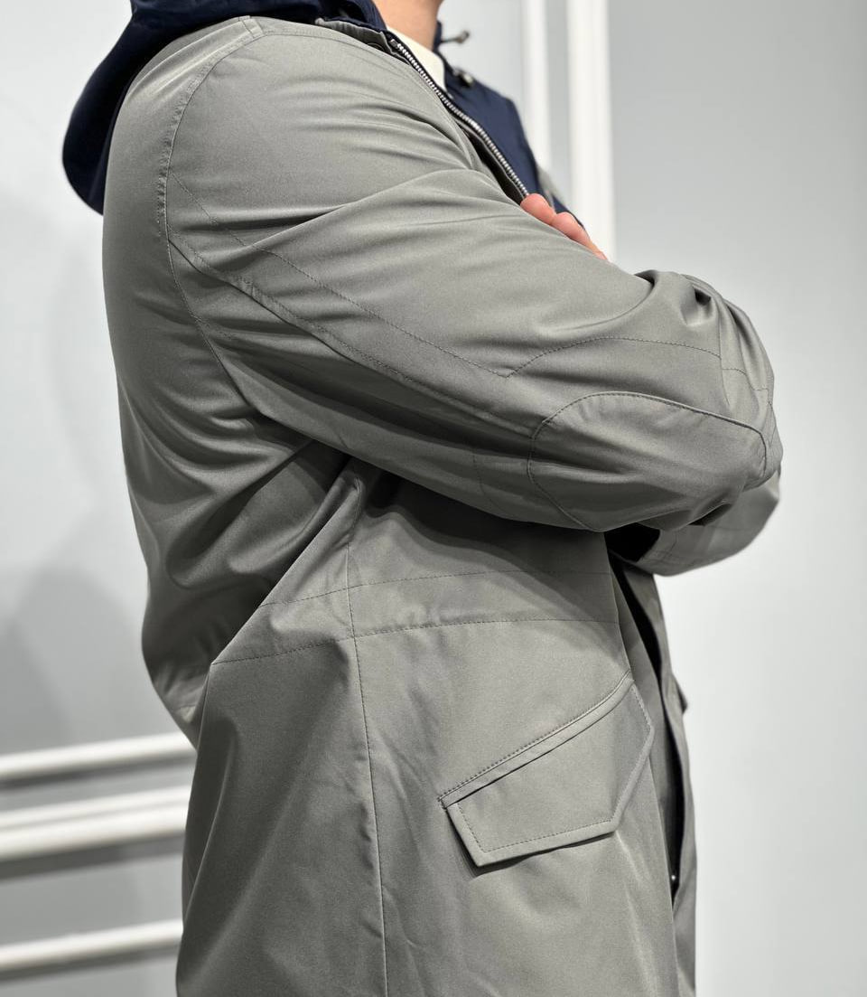 Двусторонняя куртка Kiton LUX-96482 – это стильная и функциональная вещь от известного бренда. Куртка выполнена в сером цвете с темно-синей внутренней отделкой, что делает её универсальной для различных образов. Дизайн куртки предполагает практичность и комфорт в повседневной носке.