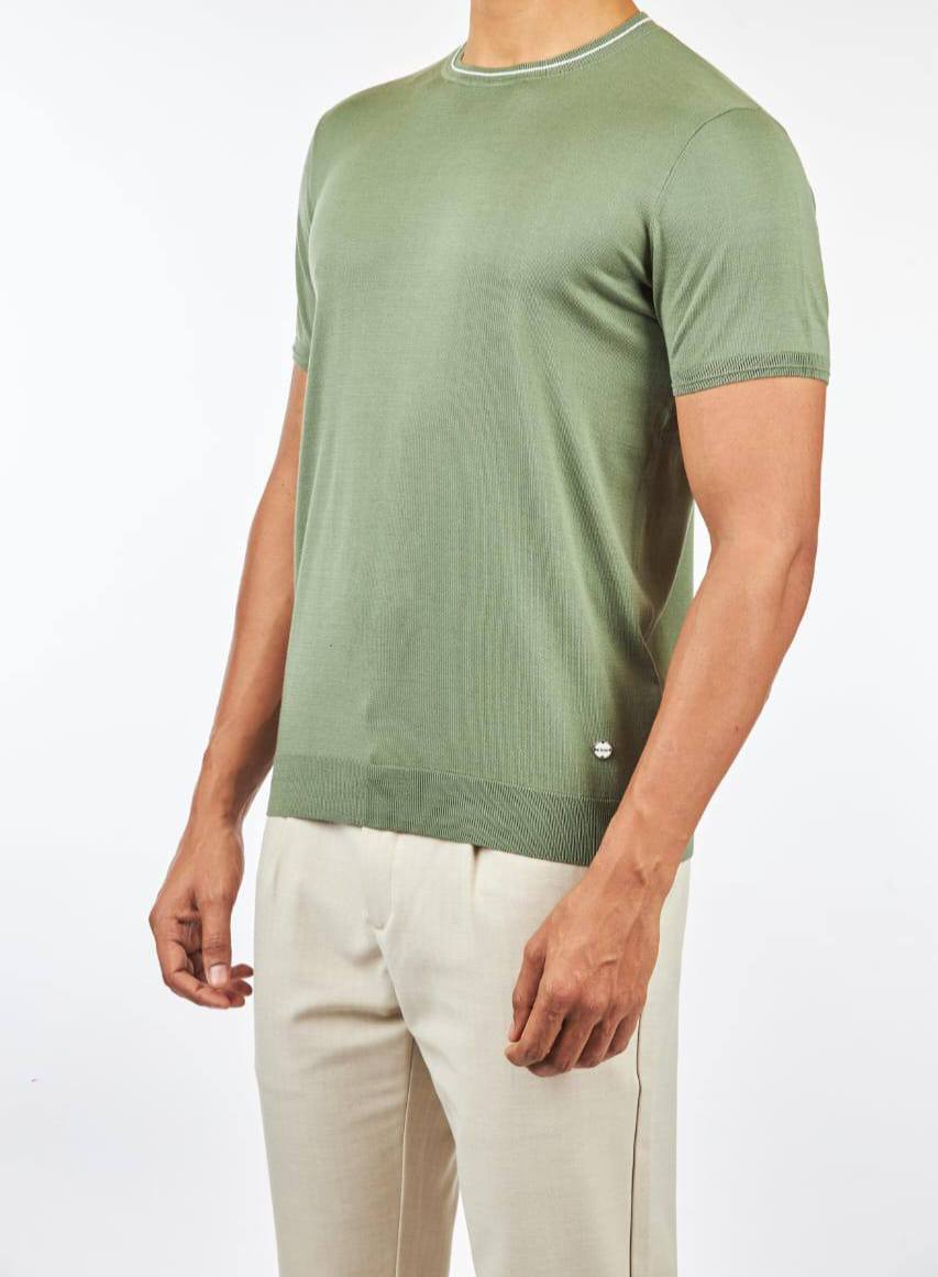 Футболка Kiton LUX-103184 представляет собой элегантный предмет гардероба. Она выполнена в классическом стиле, имеет короткие рукава и круглый вырез горловины с контрастной отделкой. Мягкий, приглушенный зеленый цвет делает ее универсальной, подходящей для различных образов.