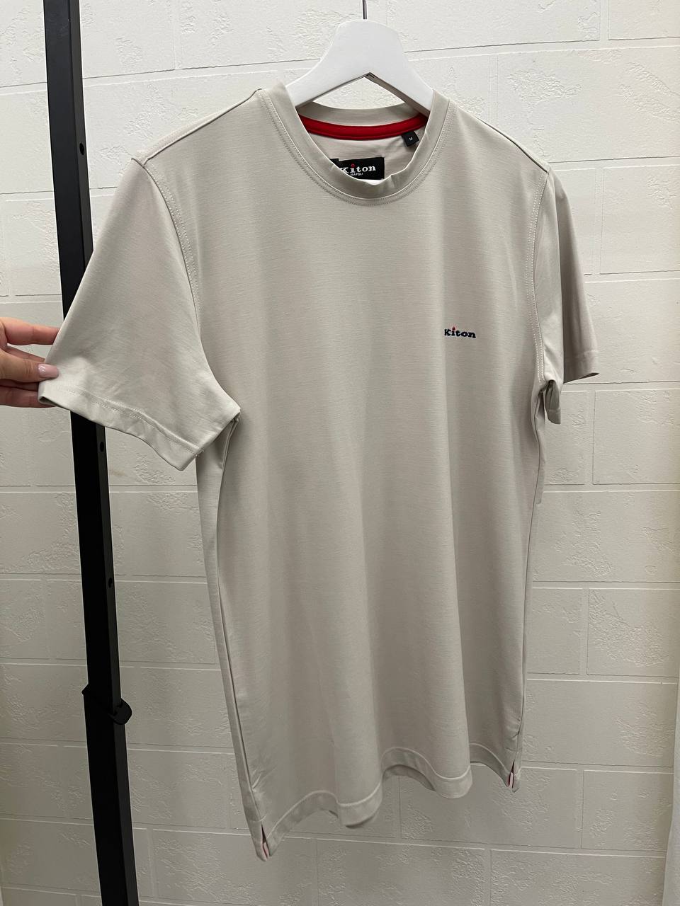 Футболка Kiton LUX-103836 - это элегантная футболка, созданная для повседневного использования. Она выполнена в классическом стиле с круглым вырезом и короткими рукавами. Футболка имеет спокойный бежевый цвет и минималистичный дизайн, что делает ее универсальной для различных образов.