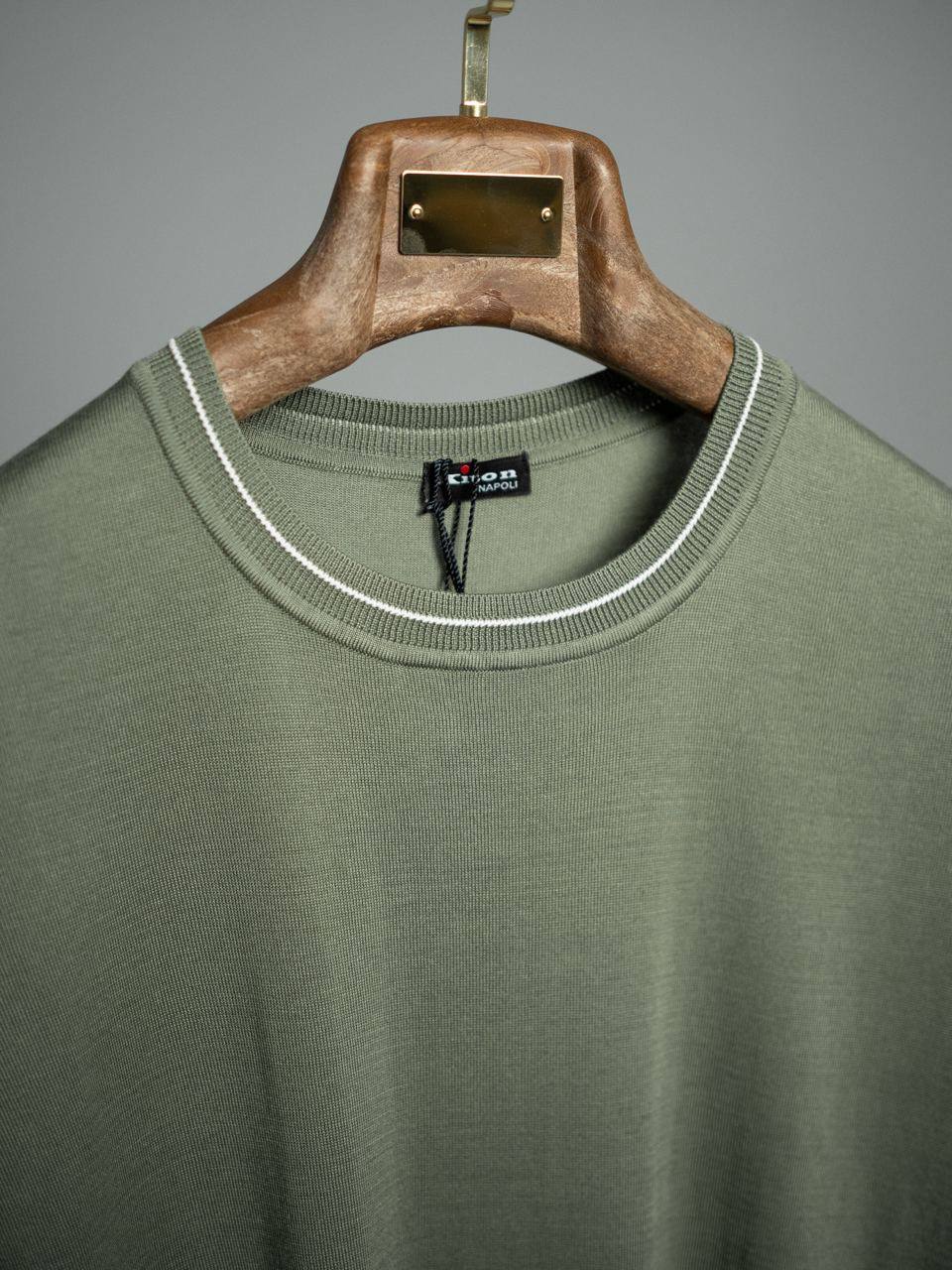 Футболка Kiton LUX-105842 - это образец элегантности и стиля, сочетающий в себе классический дизайн и современный подход к моде. Футболка выполнена в оливковом цвете с аккуратным круглым вырезом горловины, отделанным белой полоской. Мягкая и приятная на ощупь, она идеально подойдет для создания как повседневных, так и более формальных образов.