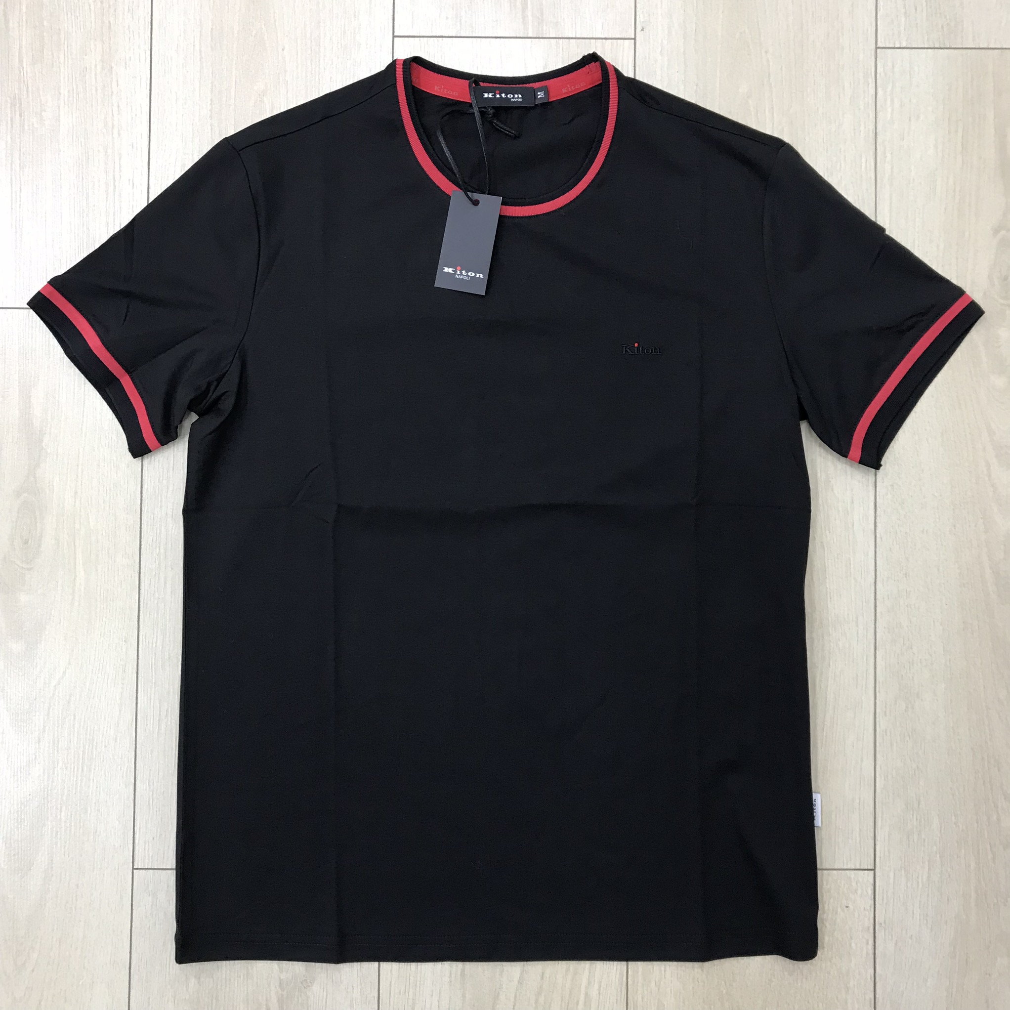 Футболка мужская Kiton LUX-26952 — это стильная и элегантная модель, которая подойдет для современного мужчины. Дизайн футболки отличается минимализмом и лаконичностью, что делает ее универсальной основой для множества образов. Элегантные красные манжеты и воротник добавляют изюминку и подчеркивают утонченный вкус владельца.