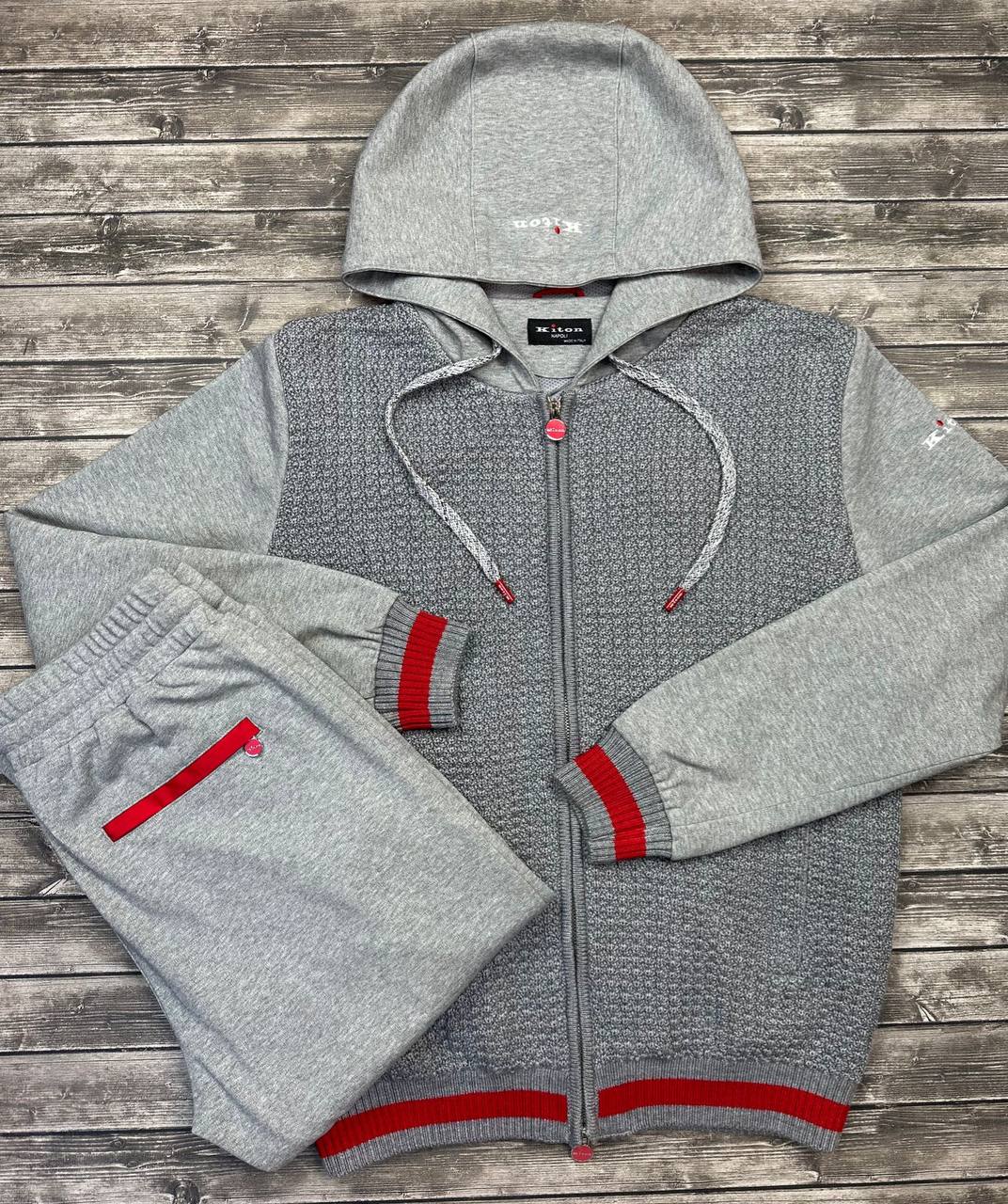 Костюм спортивный Kiton LUX-87763 — это стильный и комфортный спортивный костюм серого цвета с контрастными красными деталями. Костюм выполнен в современном стиле, который подойдет для активного отдыха и повседневной носки.