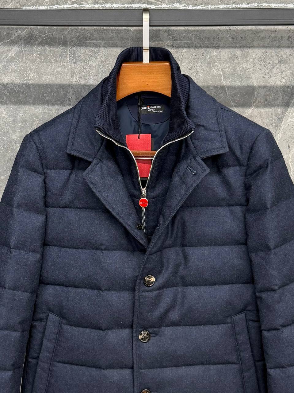 Мужская куртка Kiton выполнена в классическом стиле, сочетающем элементы строгости и практичности. Это отличный выбор для создания элегантного и комфортного образа в прохладную погоду.