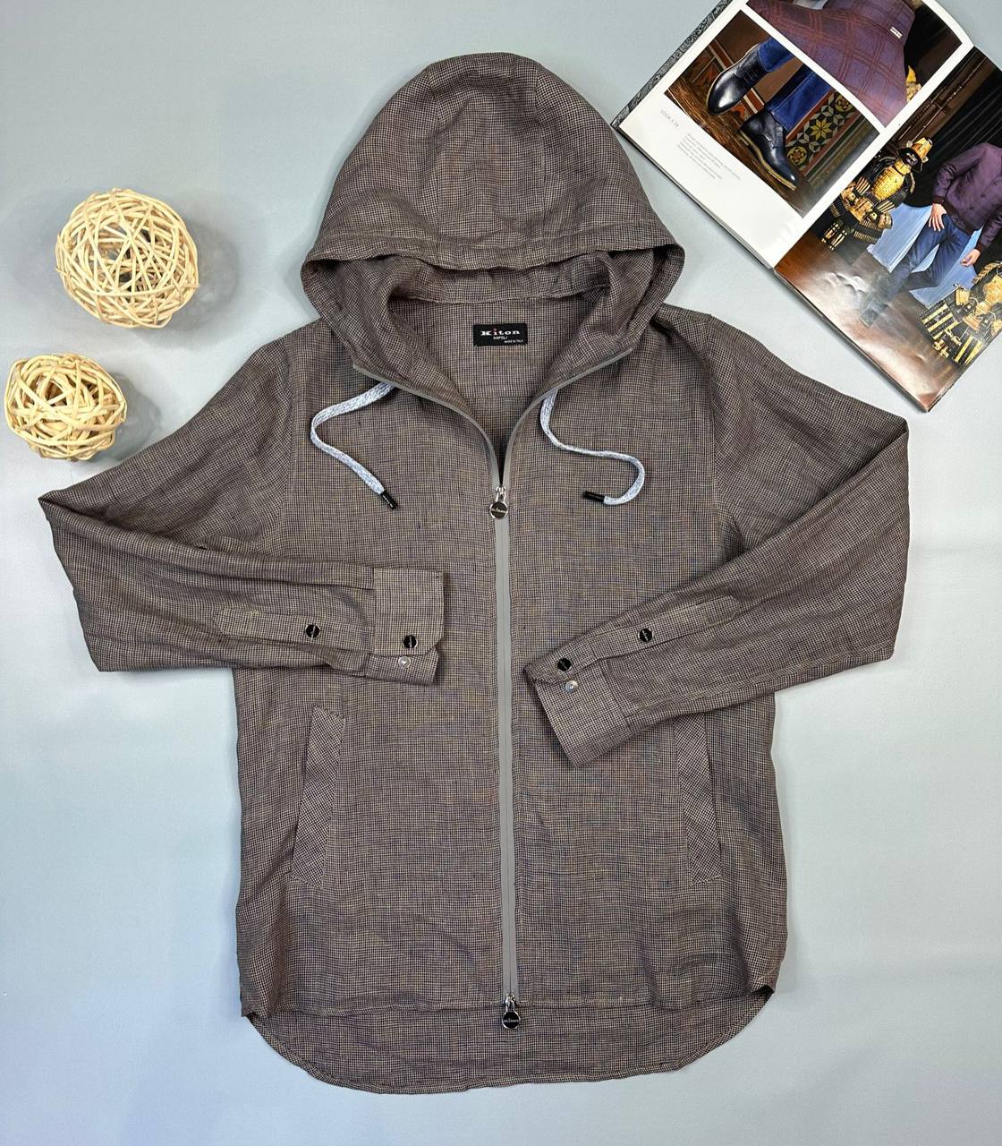 Льняная рубашка Kiton LUX-90734 – это элегантное сочетание стиля и комфорта. Модель выполнена в коричневом цвете с текстурой в клетку, имеет капюшон и застежку-молнию. Идеально подходит для создания повседневных образов.