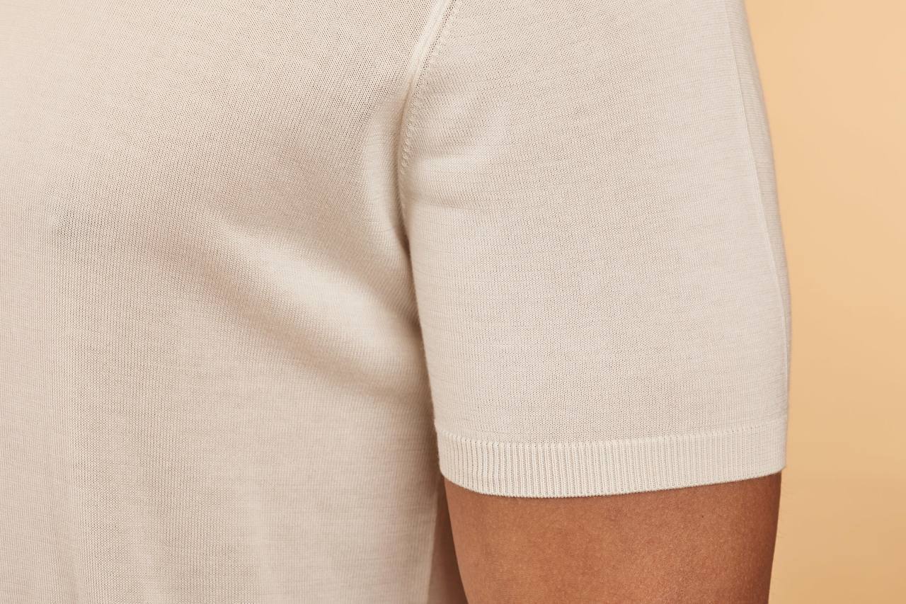 Поло Kiton LUX-116227 — это стильная модель в бежевом цвете, представленная итальянским брендом. Поло имеет короткие рукава и молнию на воротнике. Тонкая текстура материала придает изделию элегантность и делает его подходящим для различных случаев.