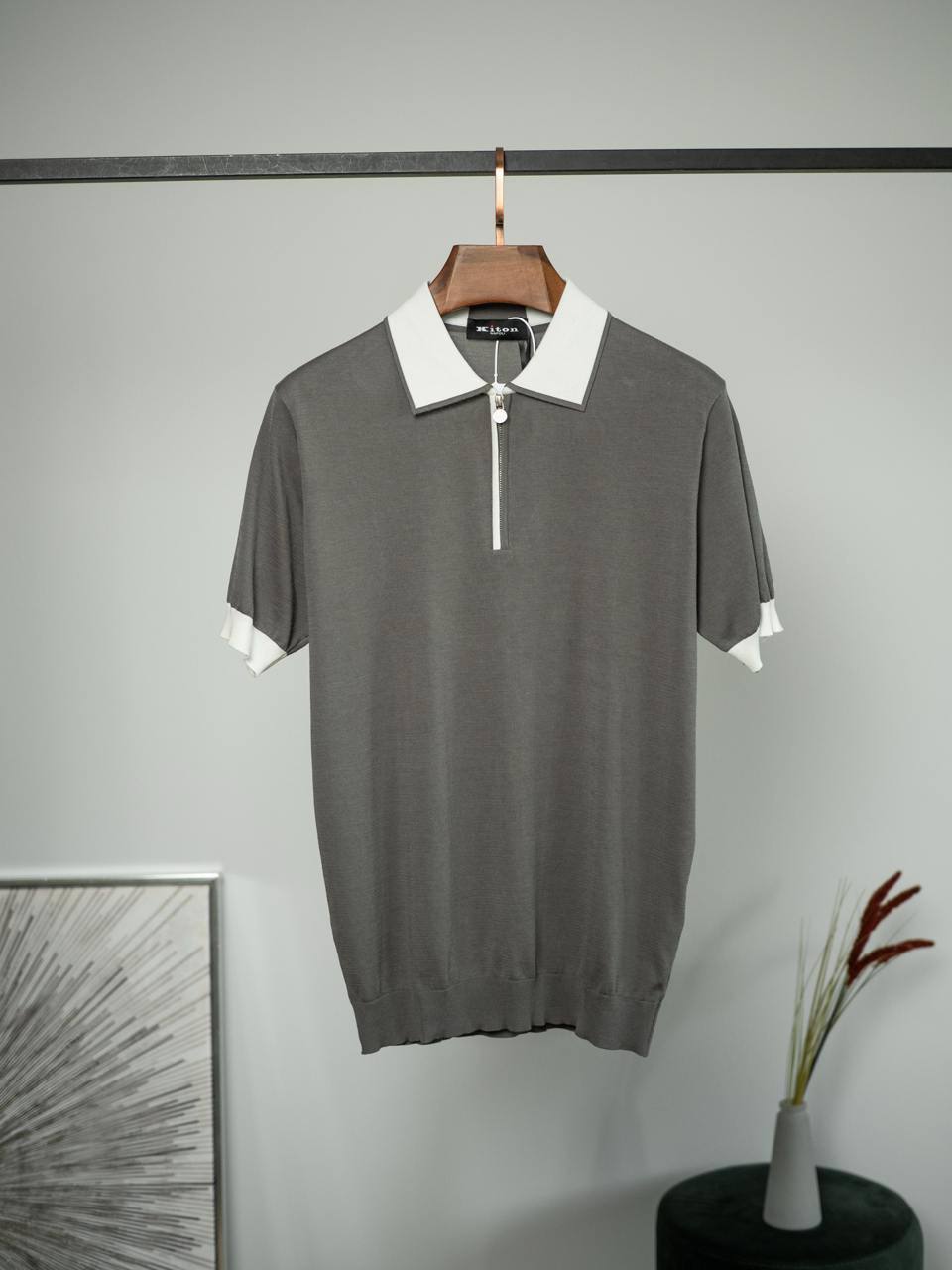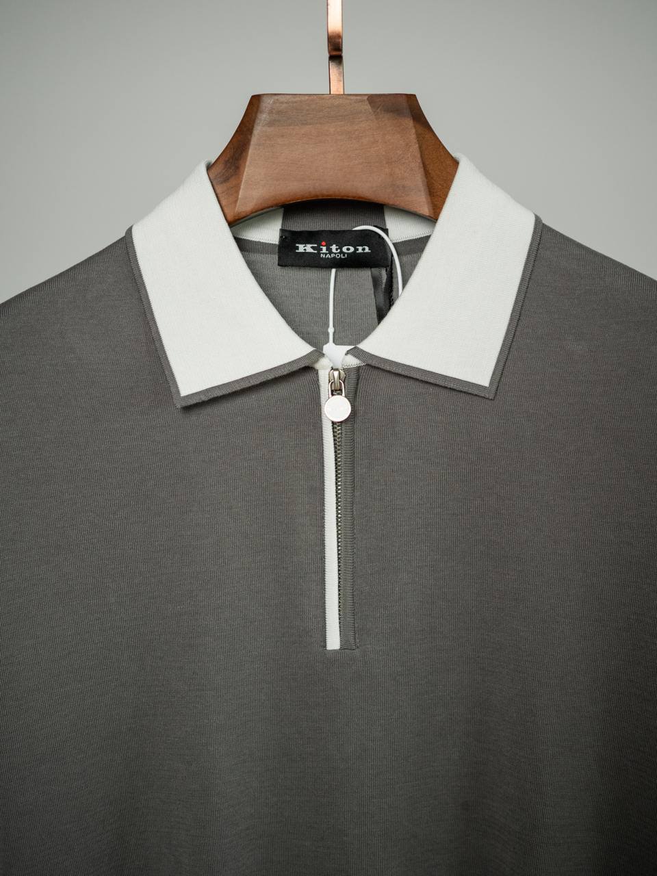Поло Kiton LUX-118776 — это воплощение элегантности и стиля. Серое поло с белыми деталями воротника и манжетов выполнено в классическом дизайне с короткой молнией. Идеально подходит для создания утонченного образа в повседневной жизни.