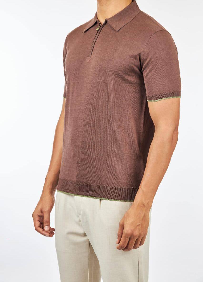 Поло Kiton LUX-103182 - это стильная модель в классическом стиле. Поло выполнено в коричневом цвете, имеет короткие рукава и воротник. Данная модель подойдёт как для повседневной носки, так и для создания элегантных образов.