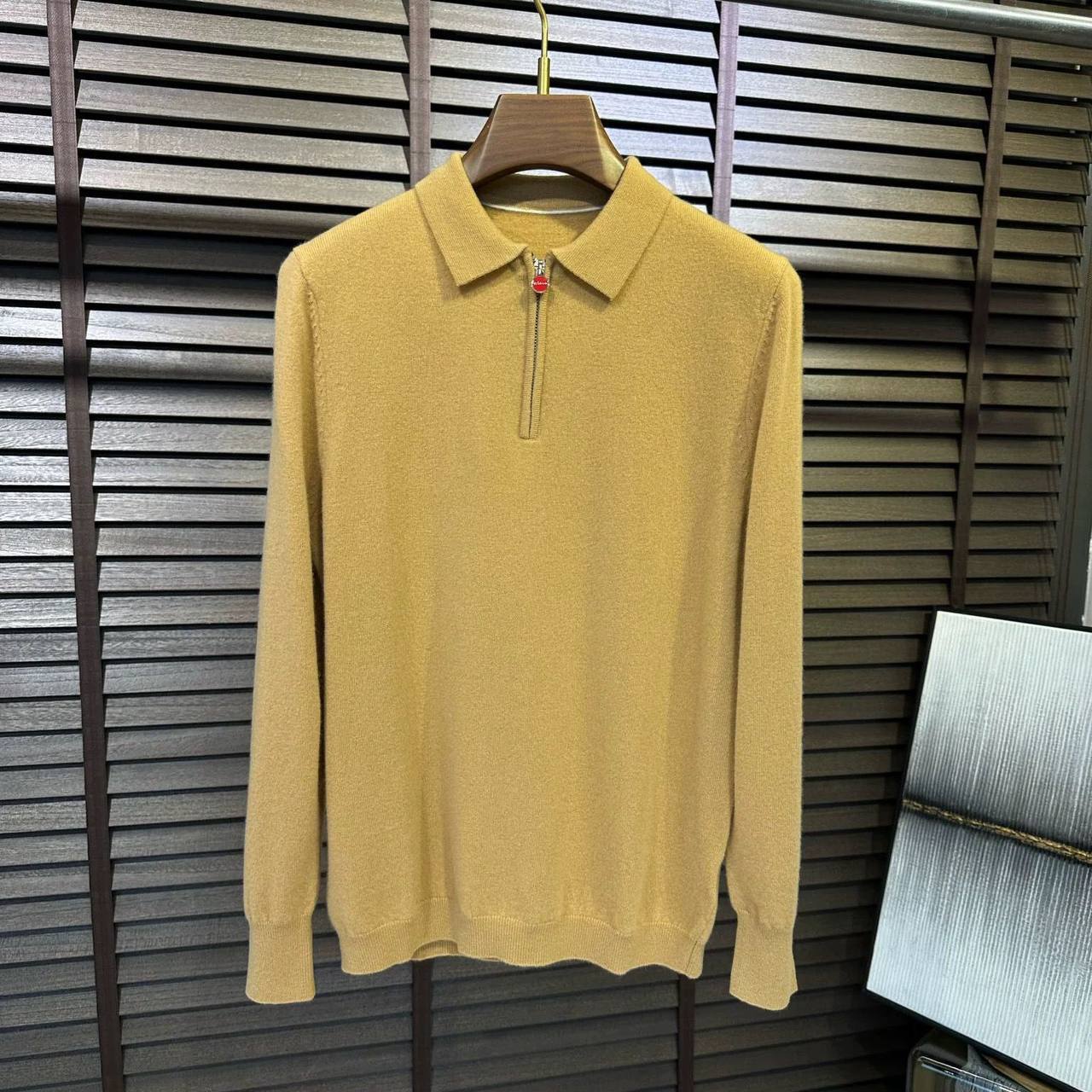 Поло Kiton LUX-111377 – это стильный предмет гардероба, выполненный в классическом стиле с добавлением элегантности. Нежный горчичный цвет придает изделию утонченность. Такое поло можно сочетать как с повседневными, так и с деловыми образами.