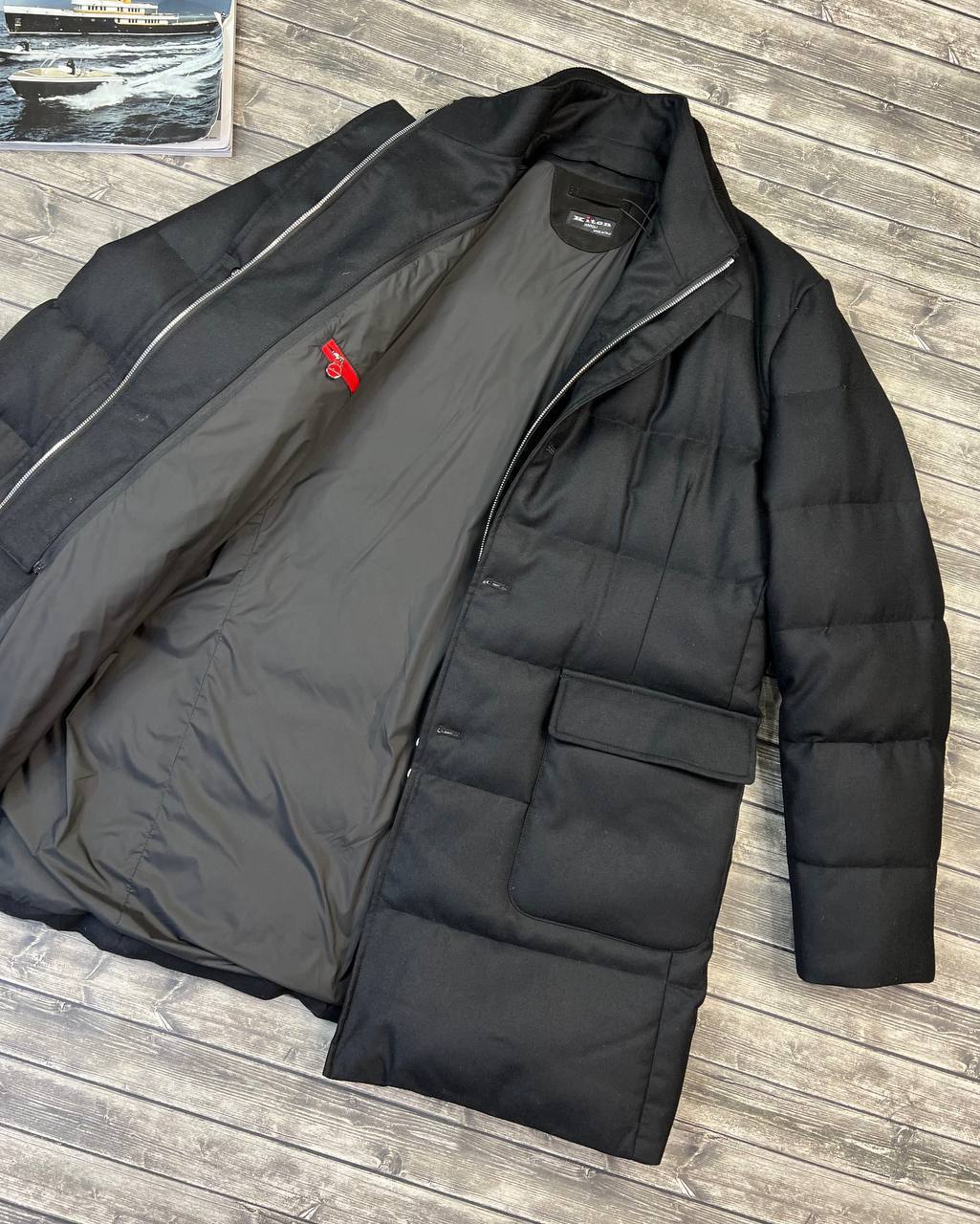 Этот пуховик от Kiton сочетает в себе элегантность классического пальто и функциональность зимней одежды. Он идеально подойдет для тех, кто ценит стиль и комфорт в холодное время года.