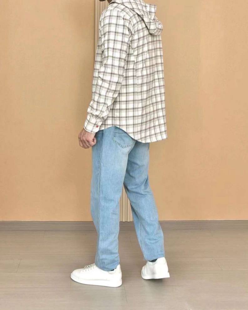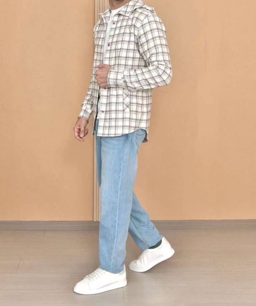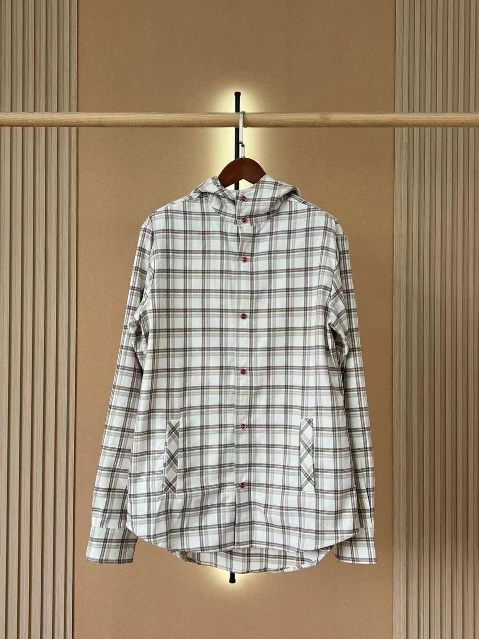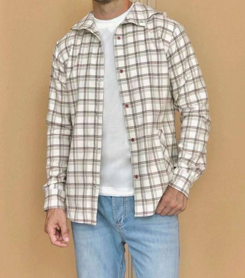 Рубашка Kiton LUX-109869, представленная на изображении, представляет собой рубашку в клетку в классическом стиле. Она выполнена в основном в кремово-белых тонах с клетчатым узором в оттенках коричневого и серого. Рубашка имеет длинные рукава и подходит для повседневной носки.