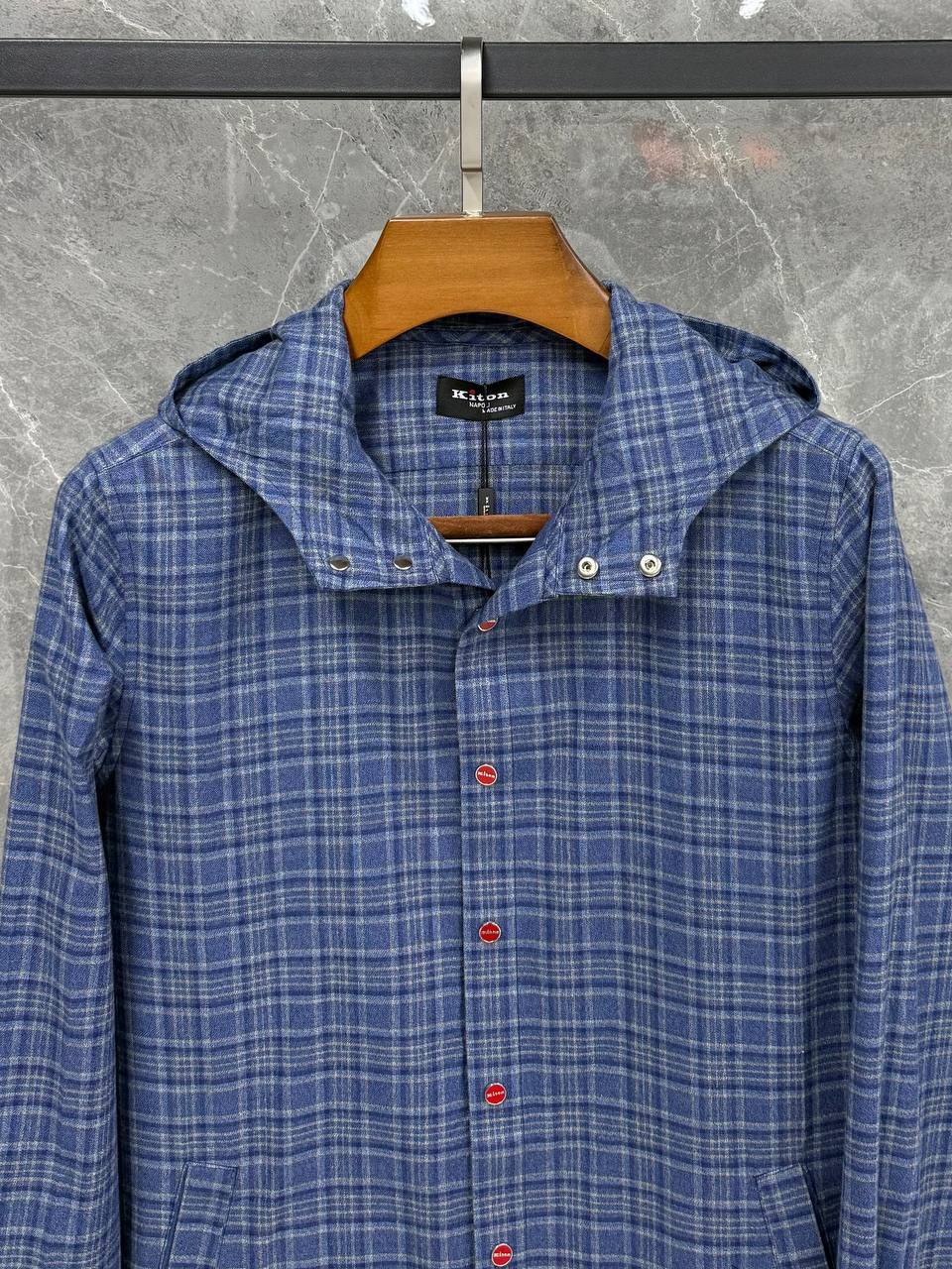 Рубашка Kiton LUX-117576 представляет собой стильную рубашку в клетку с капюшоном. Изделие выполнено в синем цвете и имеет текстурированный вид. Рубашка, представленная на изображении, идеально подходит для повседневной носки, придавая образу нотку элегантности и комфорта.