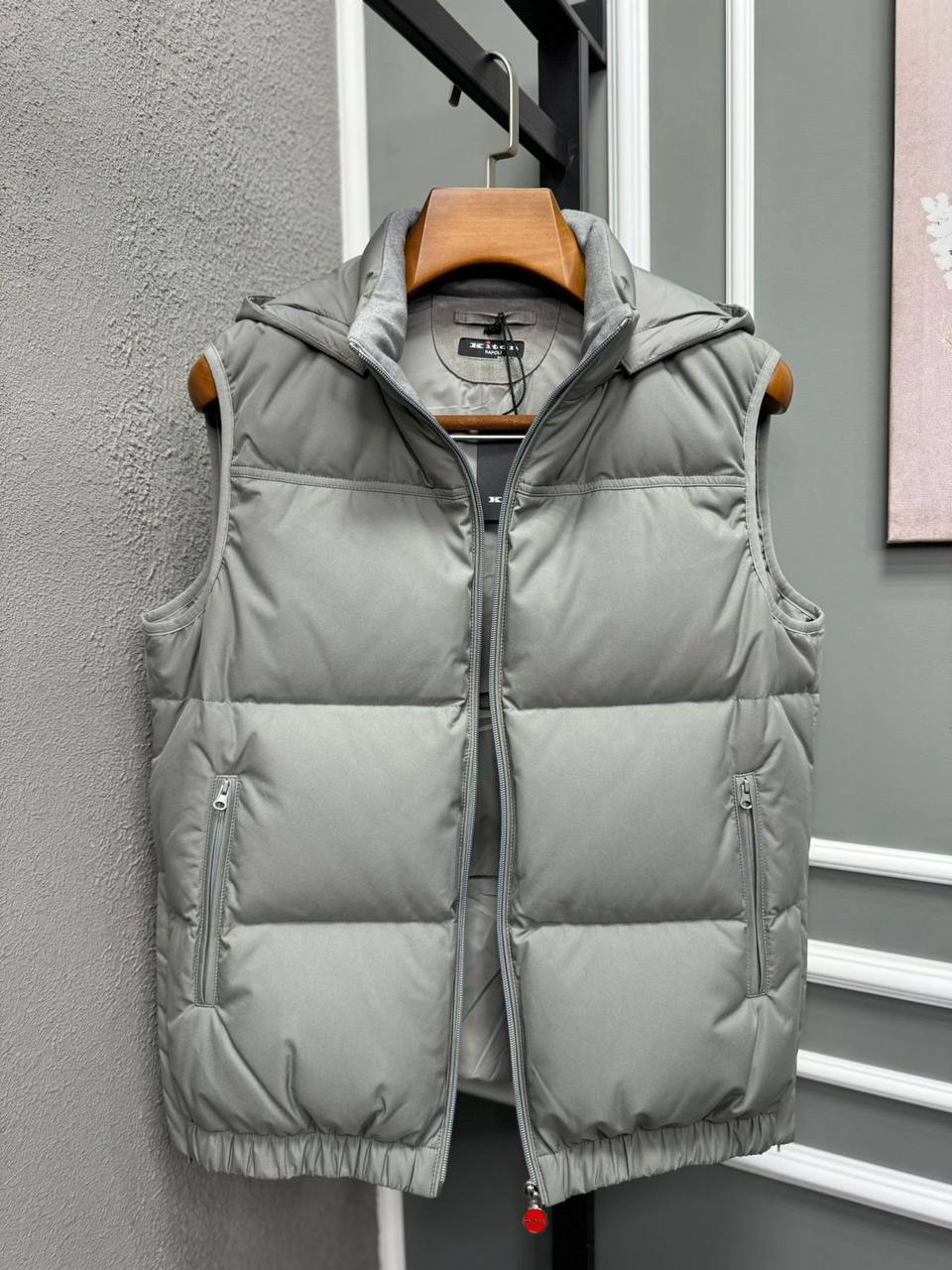 Жилет Kiton LUX-111020 - это стильный предмет гардероба в повседневном стиле. Жилет имеет серый цвет, стеганую текстуру и удобный капюшон. Он идеально подходит для создания многослойных образов, обеспечивая тепло и комфорт в прохладную погоду.