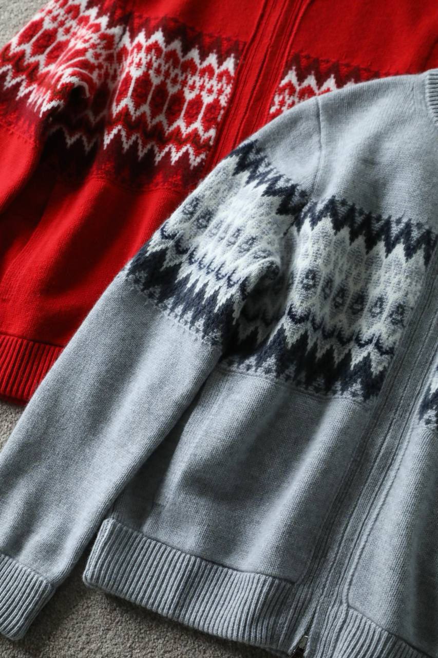 Кофта LUX-113483 представляет собой стильную и уютную модель, выполненную в сером цвете с геометрическим узором на плечах и груди. Это кофта на молнии с высоким воротником-стойкой, что делает ее идеальной для повседневной носки в прохладную погоду.