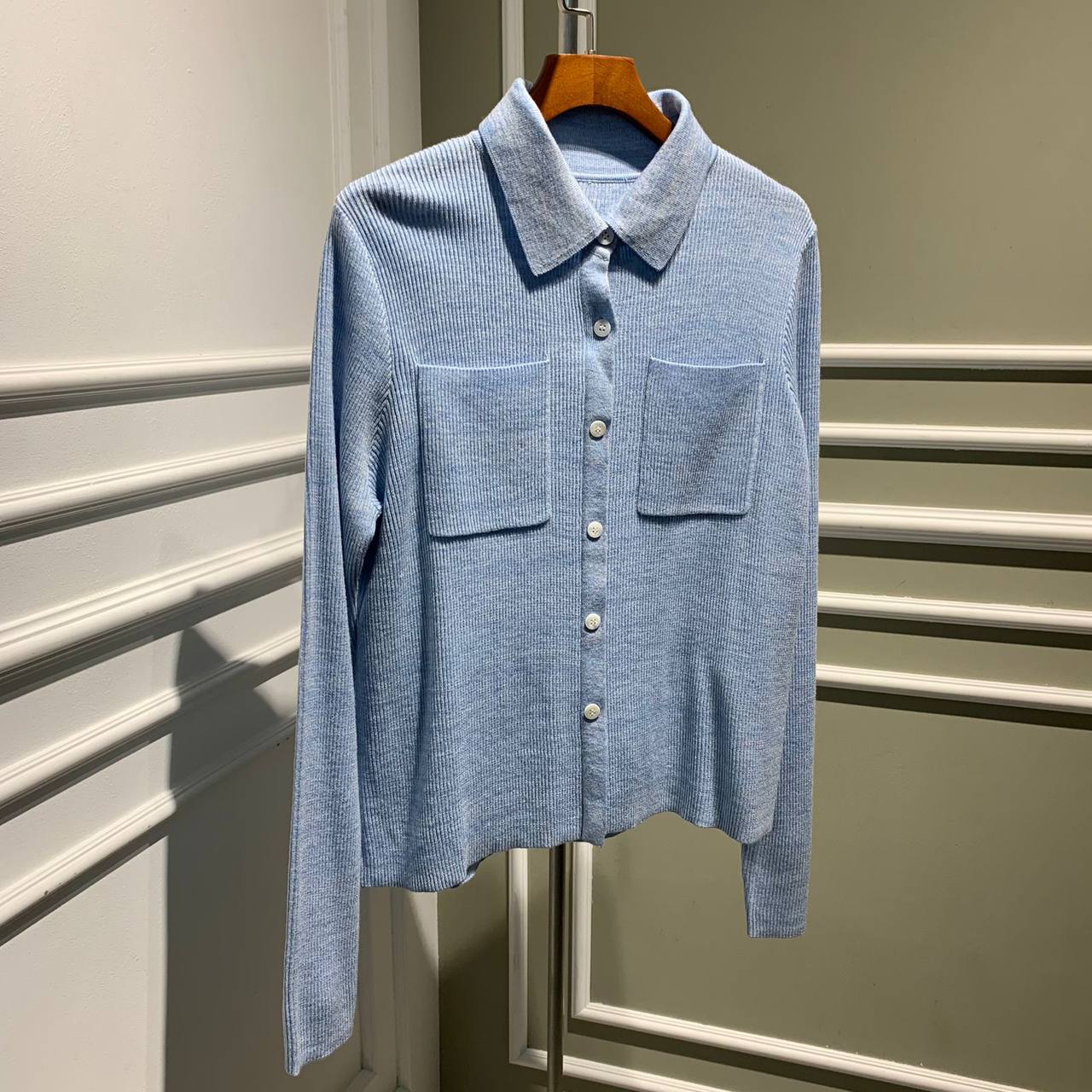 Кофта LUX-76042 — это стильная кофта небесно-голубого цвета в рубчик, выполненная в элегантном стиле. Она имеет длинные рукава, два накладных кармана и воротник-стойку, застегивается на пуговицы. Идеально подходит для создания повседневных и деловых образов.