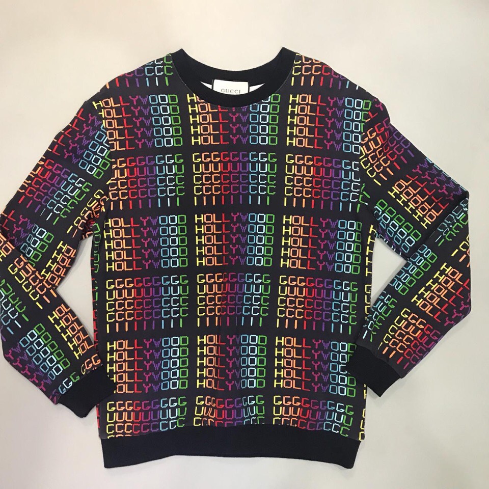 Эта мужская кофта ОДМ-041 от Gucci выполнена в ярком и современном стиле, украшенная повторяющимся принтом "HOLLYWOOD" в радужных оттенках. Данная модель идеально подойдет для создания эффектных повседневных образов.