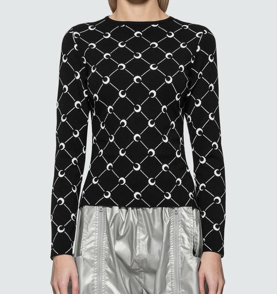 Эта женская кофта LUX-25707 от бренда Marine Serre идеально подойдет для создания стильных и запоминающихся образов. Модель выполнена в черном цвете с оригинальным принтом в виде ромбов и полумесяцев, что придает ей узнаваемый дизайнерский стиль. Она прекрасно дополнит ваш гардероб, добавив ему нотку авангардной элегантности.