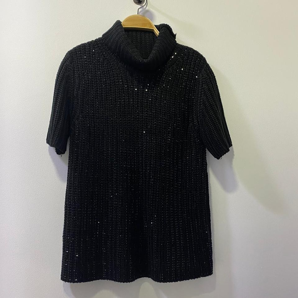 Эта женская кофта LUX-34228 представляет собой стильный элемент гардероба, выполненный в современном дизайне. Ее объемный воротник-гольф и короткие рукава придают образу элегантность. Черный цвет с деликатным блеском пайеток добавляет изысканности, делая эту кофту идеальным выбором для особых случаев или для создания эффектного повседневного образа.