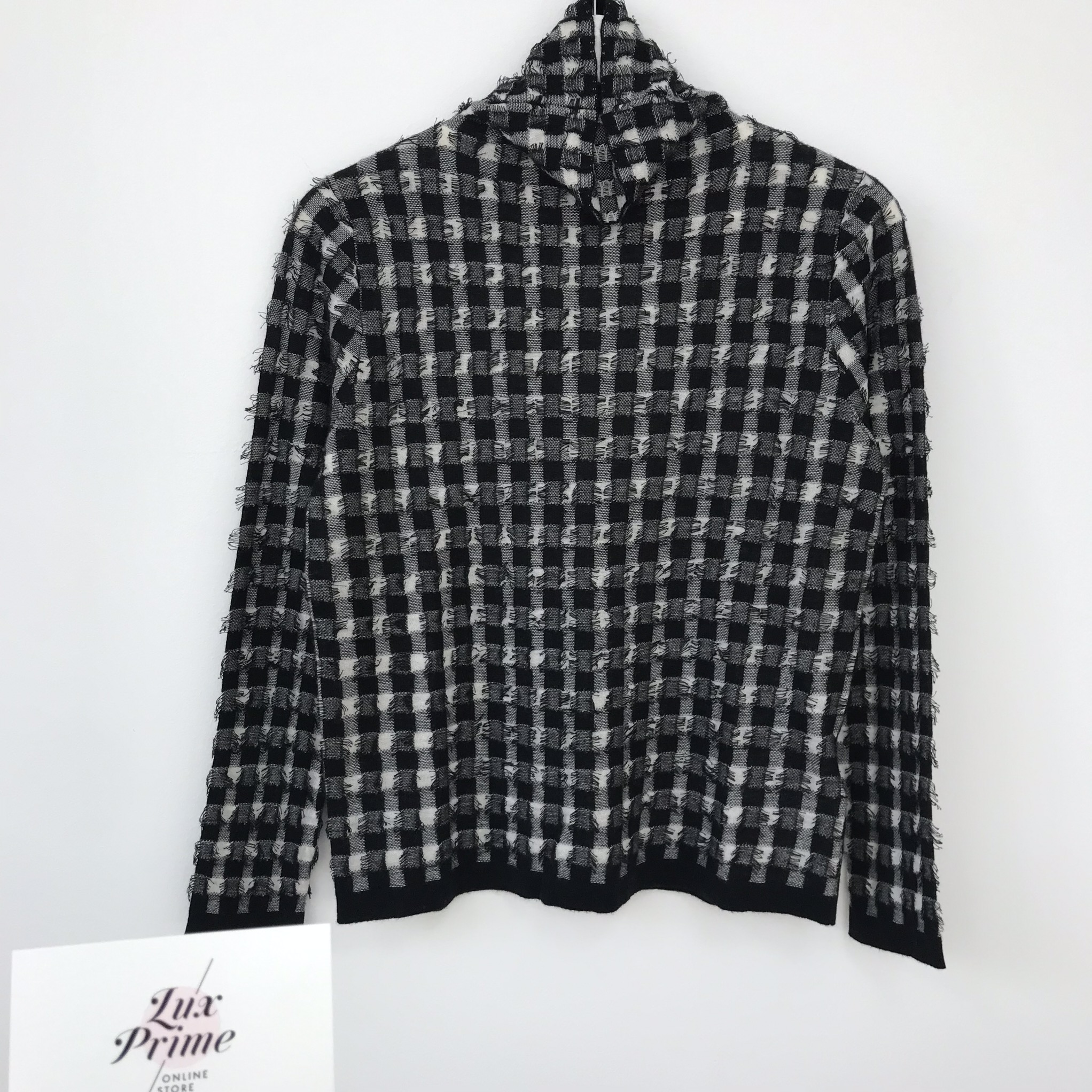 Эта стильная женская кофта LUX-17762 от бренда Luxe Prime выполнена в классическом черно-белом клетчатом дизайне с оригинальной текстурой. Она идеально подойдет для создания элегантных и уютных образов в холодное время года, благодаря высокому воротнику и приятному материалу.
