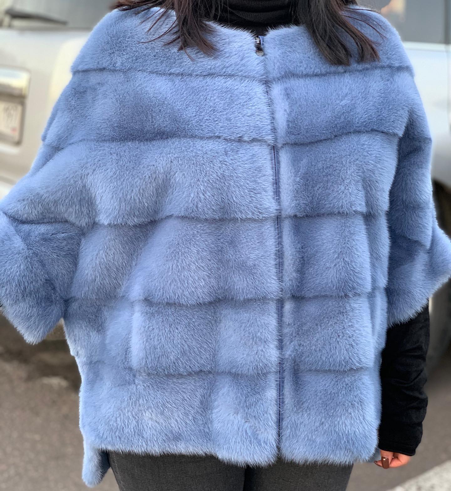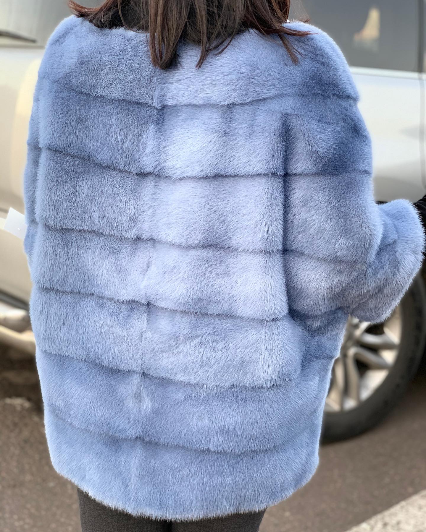 Это стильная женская кофта с короткими рукавами, выполненная в нежном голубом цвете. Дизайн кофты акцентирует внимание на фактуре меха, создавая элегантный и роскошный образ. Кофта идеально подходит для создания как повседневных, так и вечерних нарядов, добавляя образу утонченности и изысканности.