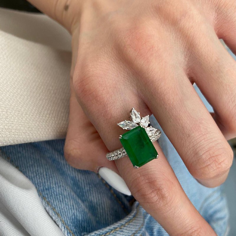 Кольцо LUX-53016 от LUXE-CRIME — это изысканное ювелирное изделие, которое подчеркнет ваш неповторимый стиль. Дизайн кольца сочетает в себе элегантность и современность, делая его идеальным аксессуаром как для повседневных образов, так и для особых случаев. Центральным элементом является крупный изумруд прямоугольной огранки, окруженный сверкающими белыми камнями, напоминающими лепестки цветка.