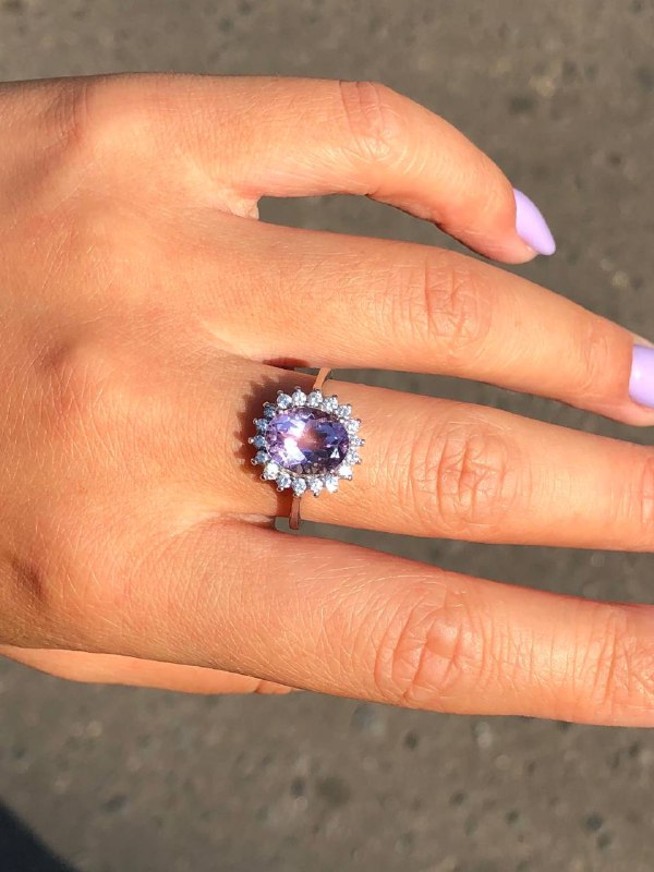Кольцо LUX-56194 – это изысканное ювелирное изделие, выполненное в классическом стиле. Его центральным элементом является сияющий овальный камень нежно-лилового оттенка, окруженный россыпью прозрачных кристаллов, создающих эффект ореола. Это кольцо станет прекрасным дополнением как к повседневному, так и к вечернему образу, подчеркивая утонченный вкус своей обладательницы.