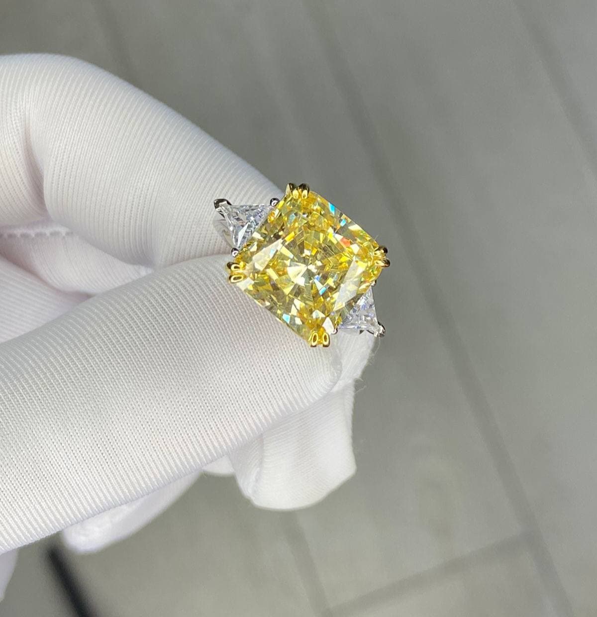 Это роскошное кольцо LUX-58337 представляет собой настоящее произведение искусства, выполненное в изысканном стиле. Центральным элементом является крупный желтый камень квадратной огранки, сияющий богатством оттенков. Его обрамляют два прозрачных камня треугольной формы, добавляя композиции элегантности и блеска.