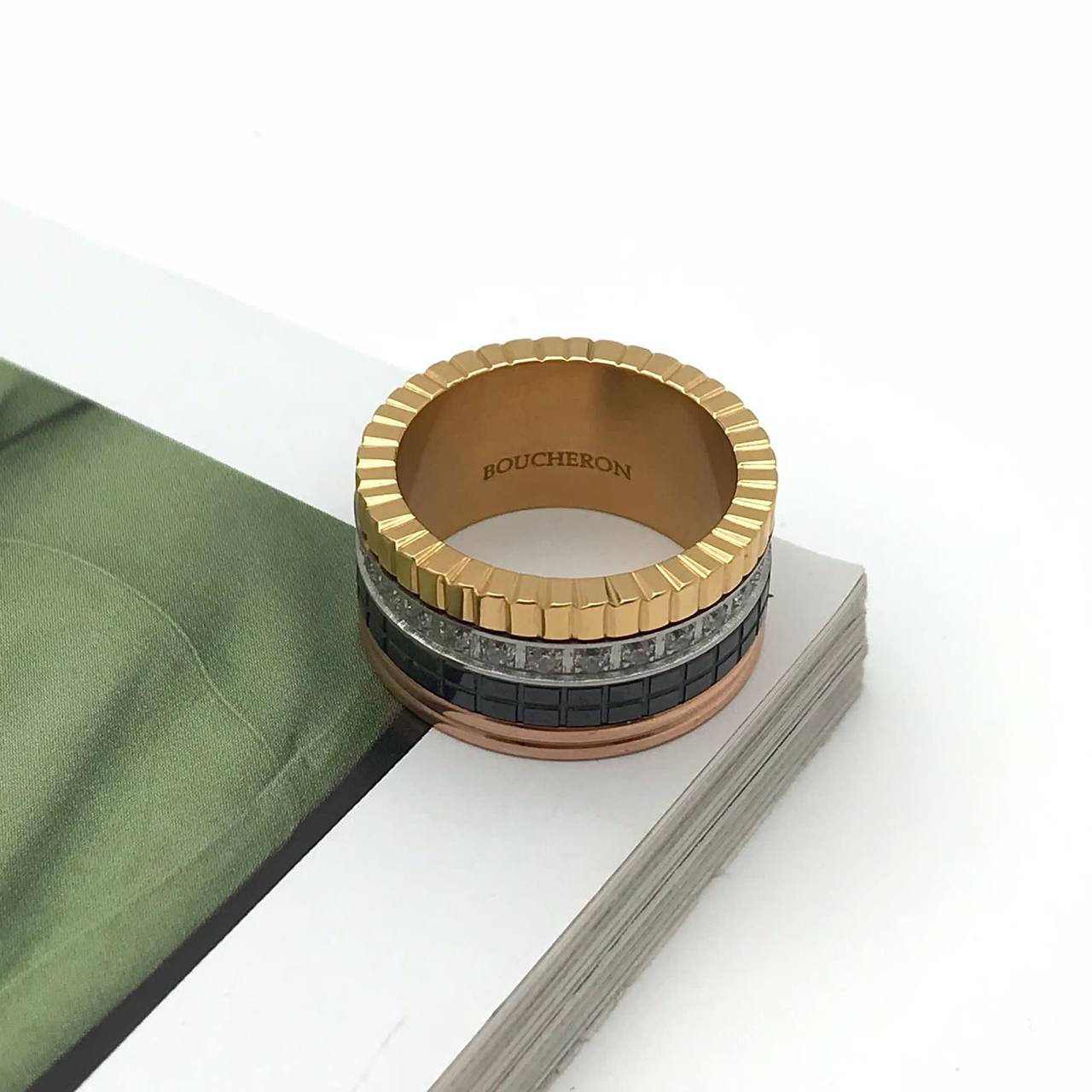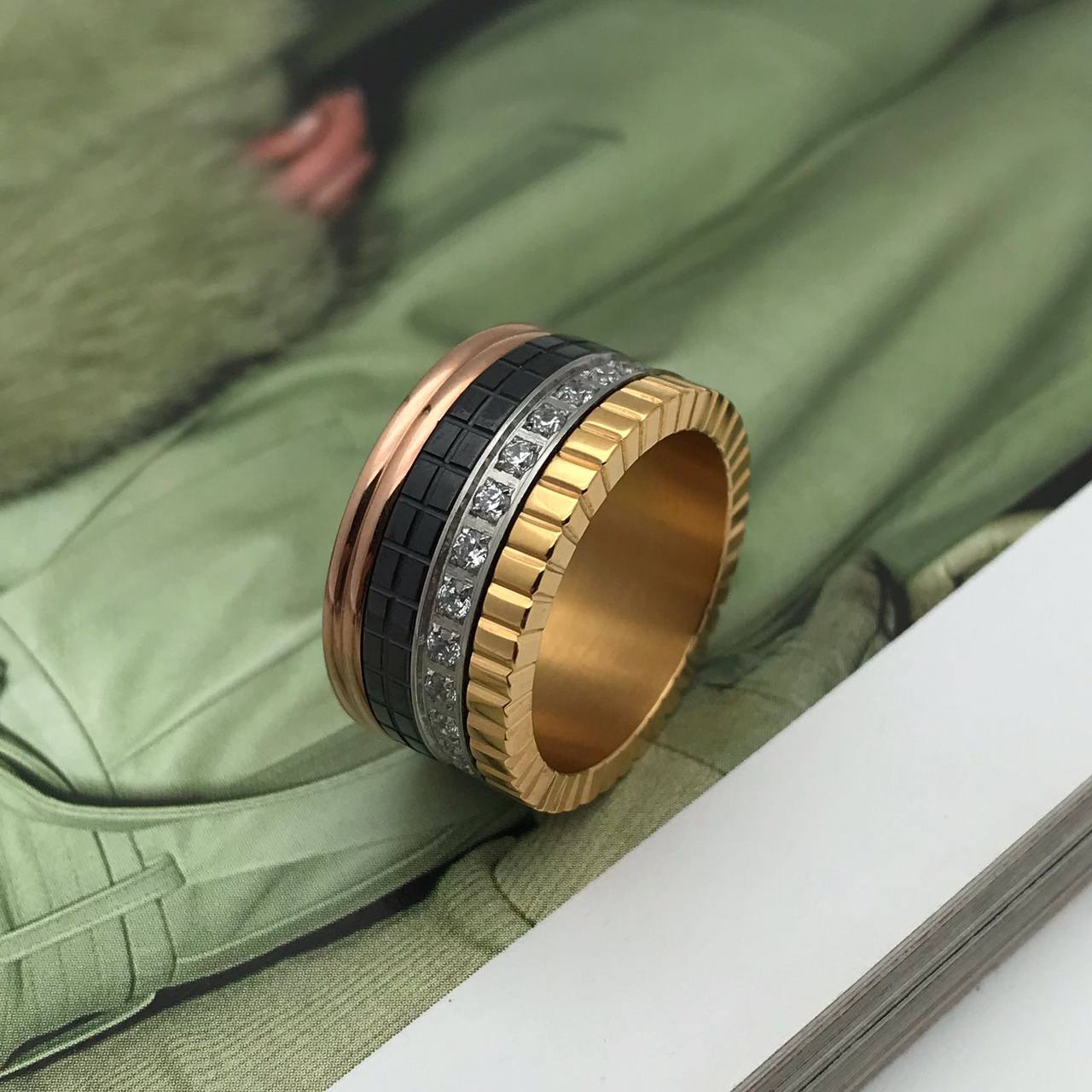 Кольцо LUX-93003 — это изысканное украшение, сочетающее в себе современный стиль и элегантность. Кольцо выполнено в многослойном дизайне с чередованием различных элементов и текстур, что придает ему уникальный и привлекательный вид. Золотистый цвет основы кольца гармонично сочетается с другими вставками, создавая эффектный акцент на руке.