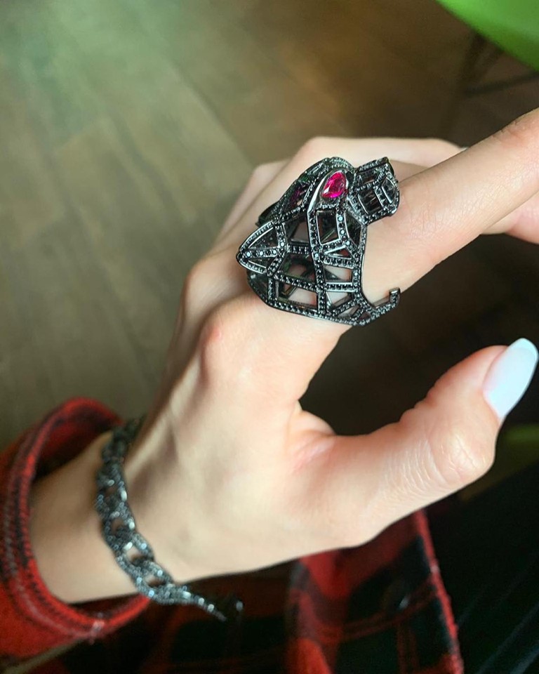 Кольцо LUX-23448 от LUX-CRIME — это эффектное украшение, выполненное в стиле арт-деко, которое подчеркнет индивидуальность своего владельца. Детализированный дизайн в форме головы пантеры с инкрустацией черными и красными камнями делает это кольцо настоящим произведением искусства, способным стать центральным элементом любого образа.
