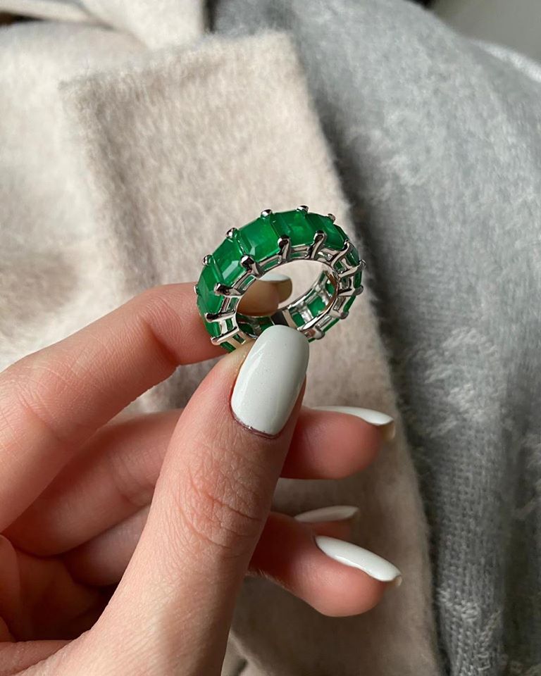 Кольцо LUX-28956 от бренда LUXE-CRIME представляет собой изысканное ювелирное изделие в современном стиле. Аксессуар украшен россыпью ярко-зеленых камней прямоугольной огранки, которые эффектно дополняют серебристый металл. Это кольцо станет прекрасным дополнением к любому образу, добавляя ему нотку роскоши и элегантности.