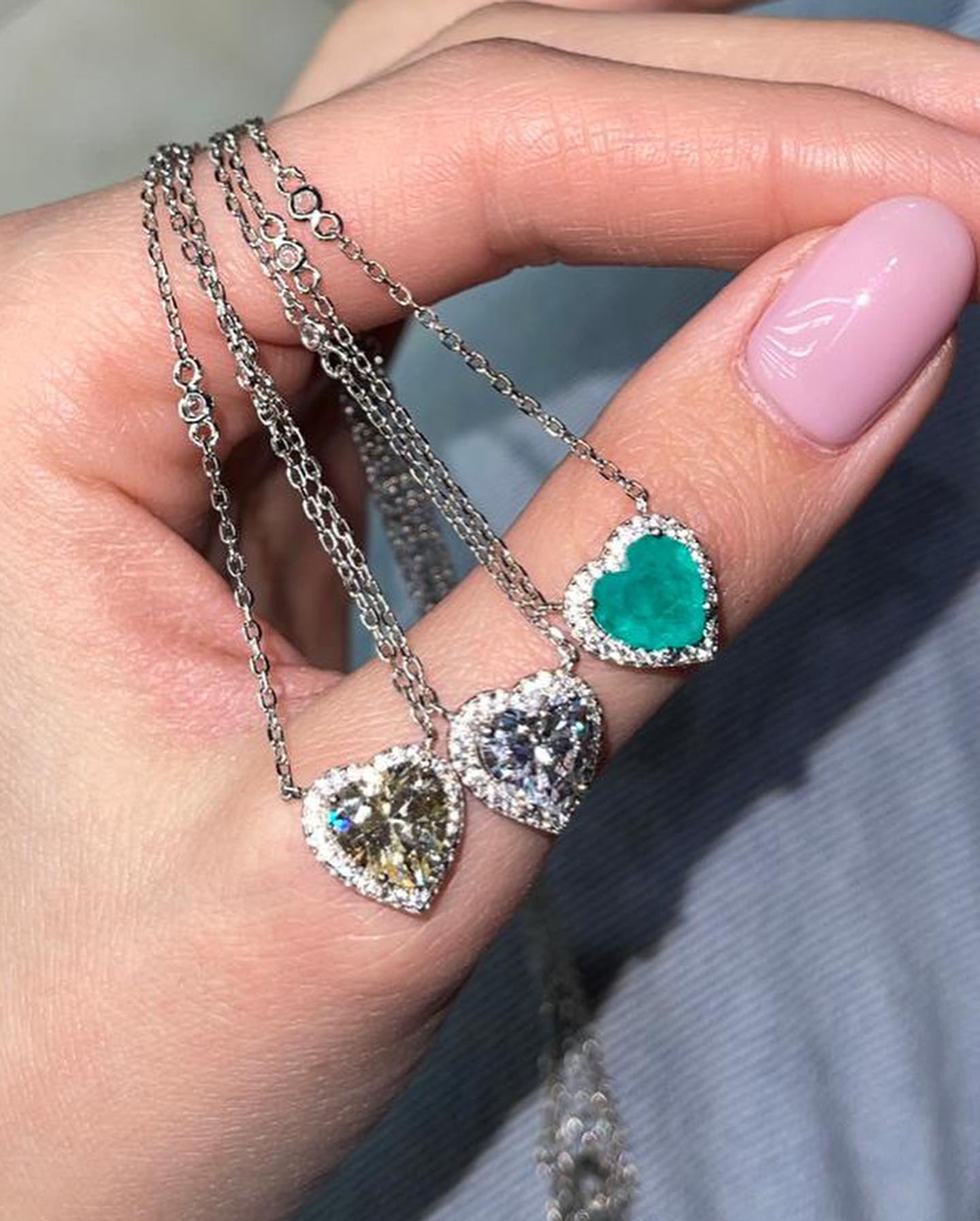 Материал: серебро, бриллианты, изумруд (одно из представленных сердец)