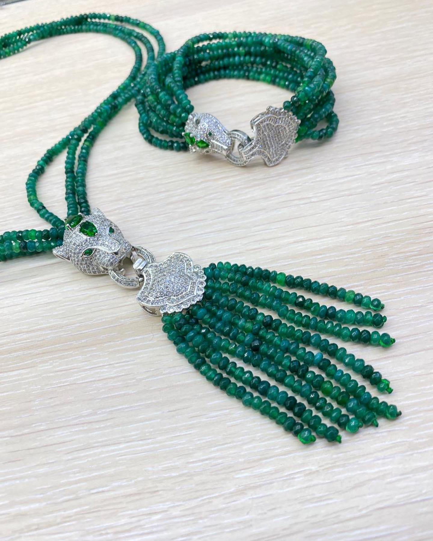 Колье LUX-32193 – это изысканное украшение, выполненное в стиле, вдохновленном дикой природой. Это многорядное колье из зеленых бусин с подвеской в виде головы пантеры, инкрустированной камнями, станет ярким акцентом в вашем образе. Дизайн украшения подчеркивает элегантность и утонченность.