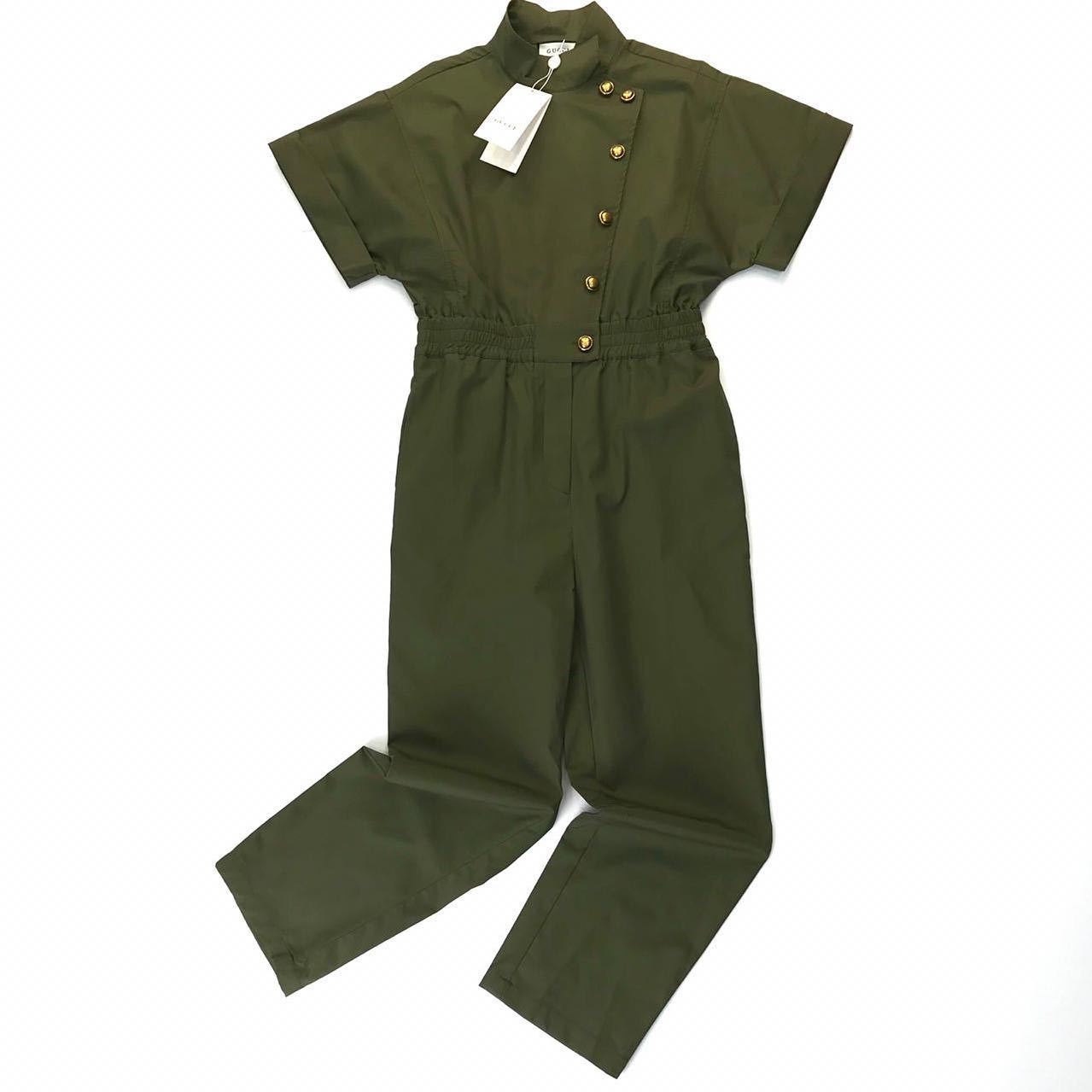 Этот элегантный комбинезон LUX-32272 бренда GUE$S в цвете хаки отличается женственным дизайном, сочетающим в себе военную эстетику и современный крой. Модель с коротким рукавом и отложным воротником украшена золотистыми пуговицами, подчеркивающими талию эластичной вставкой. Комбинезон идеально подходит для создания стильных повседневных и вечерних образов.