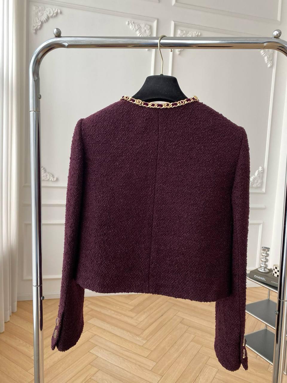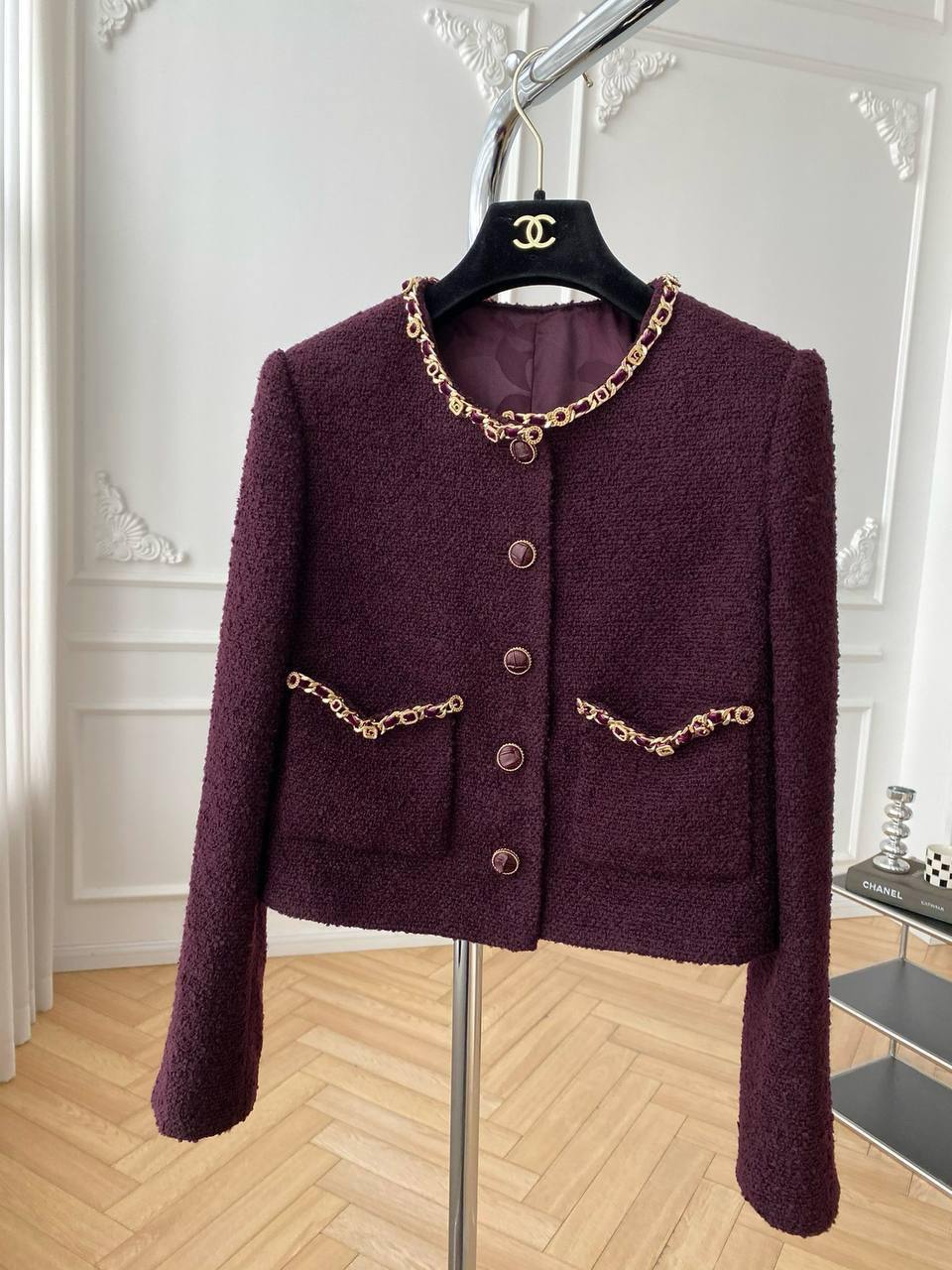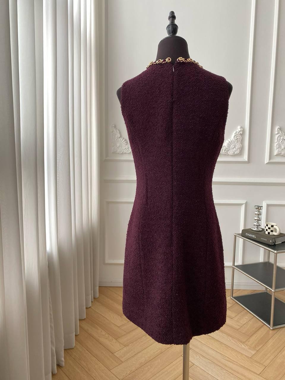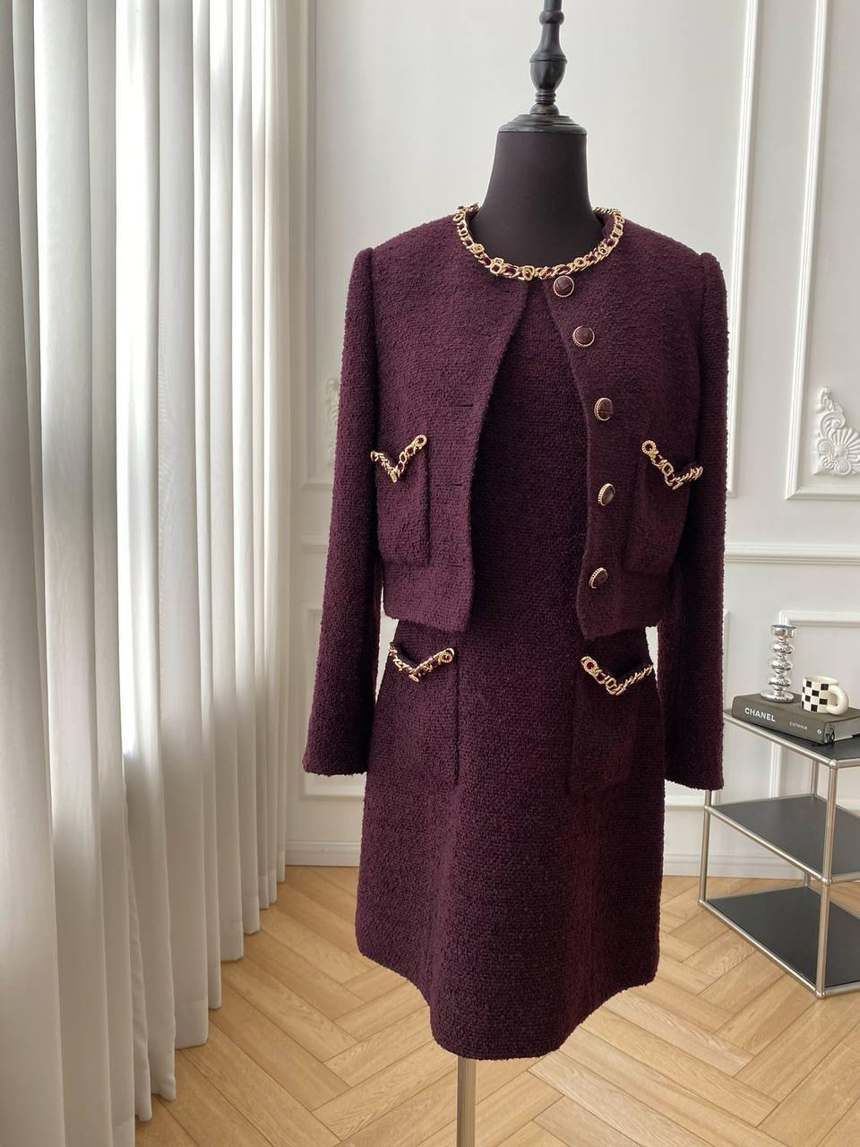 Комплект LUX-112135 — это стильный наряд в классическом стиле, состоящий из жакета и платья. Комплект выполнен в насыщенном винном оттенке с декоративными золотистыми элементами в виде цепочек. Подходит для создания элегантных образов на различные мероприятия.