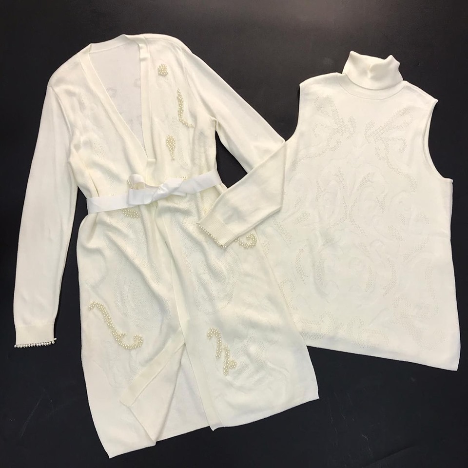Этот элегантный комплект от LUX-CRIME, состоящий из кардигана и водолазки, выполнен в утонченном стиле, идеально подходящем для создания изысканных образов. Дизайн комплекта украшен деликатными узорами и жемчужными бусинами, добавляющими роскоши и очарования.