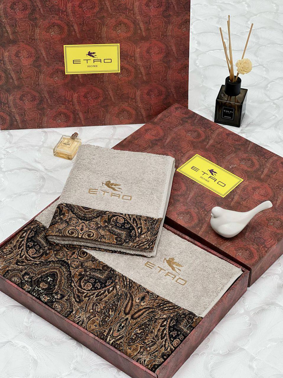Комплект из 2-х полотенец Etro LUX-76196 – это изысканный аксессуар для ванной комнаты. Полотенца выполнены в нейтральных тонах с узорчатыми деталями, которые добавляют роскоши и элегантности. Такой комплект станет прекрасным дополнением к любому интерьеру.