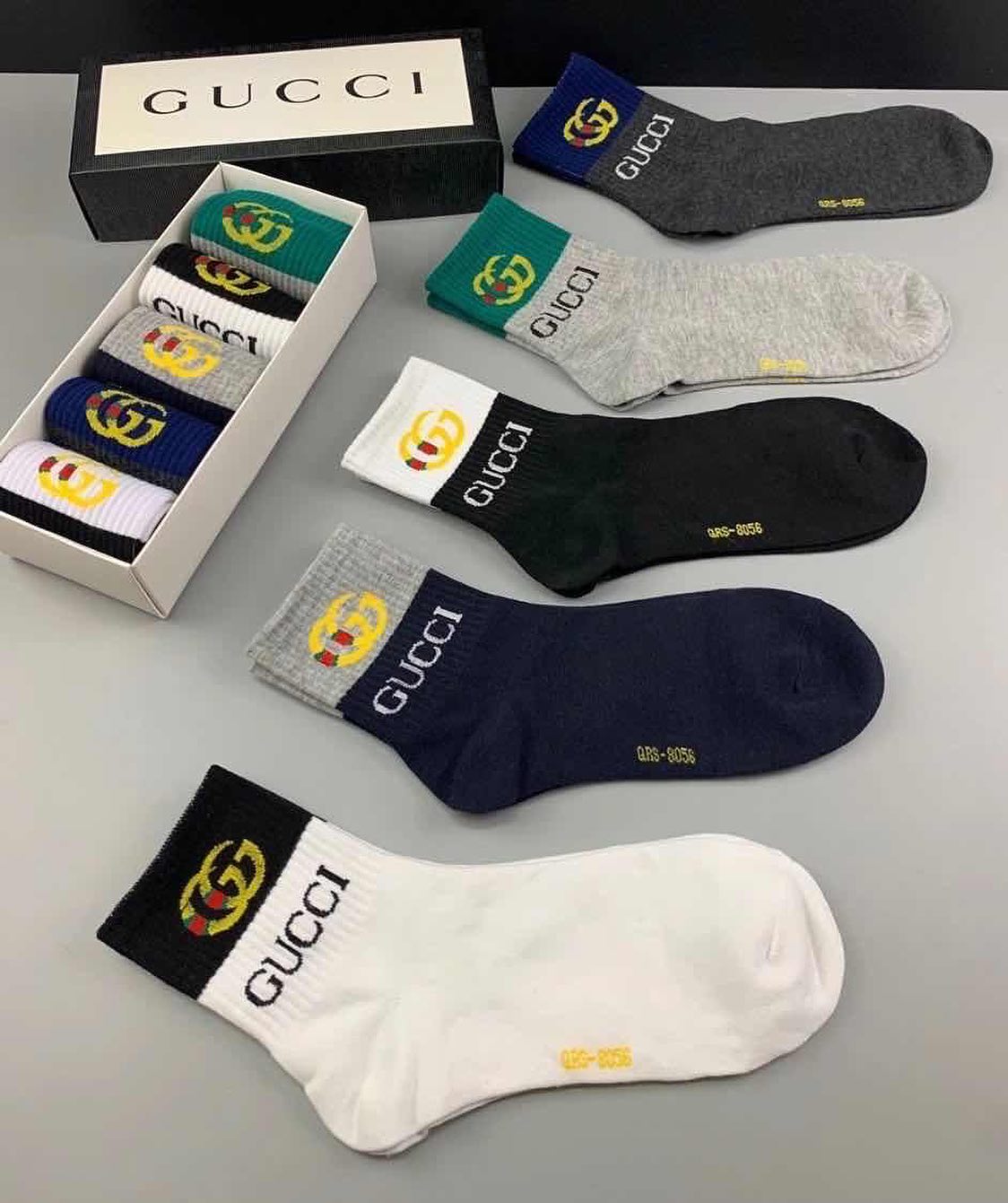 Комплект носков Gucci LUX-42419 – это стильное и практичное дополнение к вашему повседневному гардеробу. В наборе представлены носки различных расцветок, каждая из которых украшена узнаваемым логотипом бренда Gucci. Это идеальный выбор для тех, кто ценит комфорт и качество, предпочитая при этом яркие акценты в своем образе.