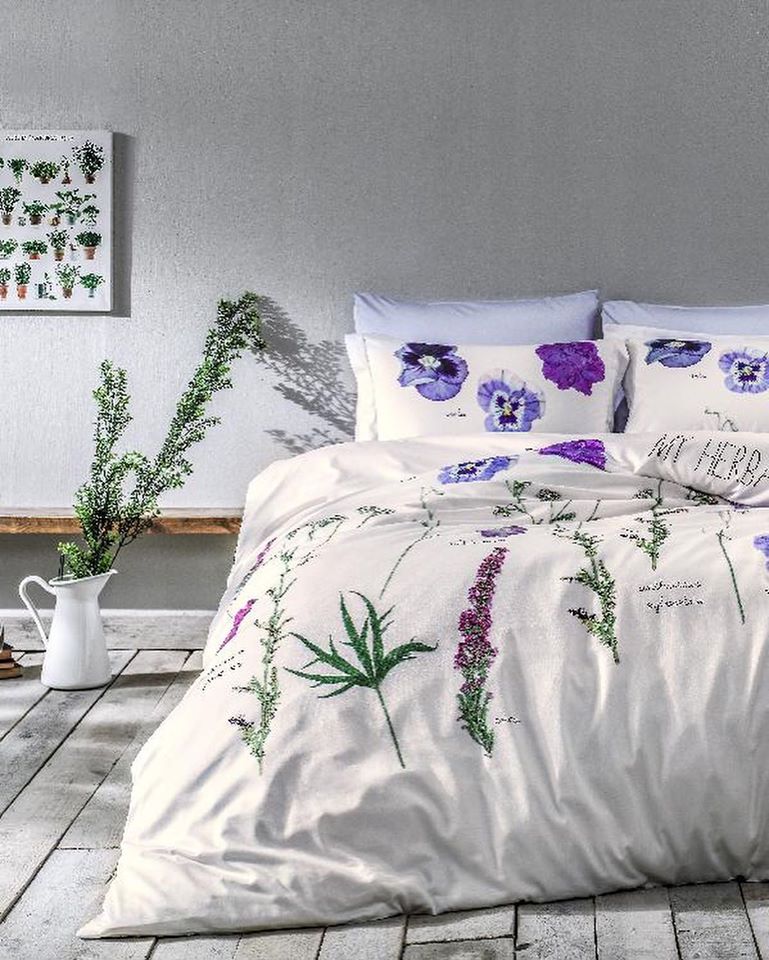 Комплект постельного белья LUX-27940 от бренда Luxe Crime представляет собой изысканный набор с уникальным дизайном, вдохновленным природой. Светлая основа комплекта украшена нежным изображением фиалок и лаванды, создавая атмосферу умиротворения и свежести. Стиль товара гармонично сочетает классику и современность, придавая спальне элегантный вид.