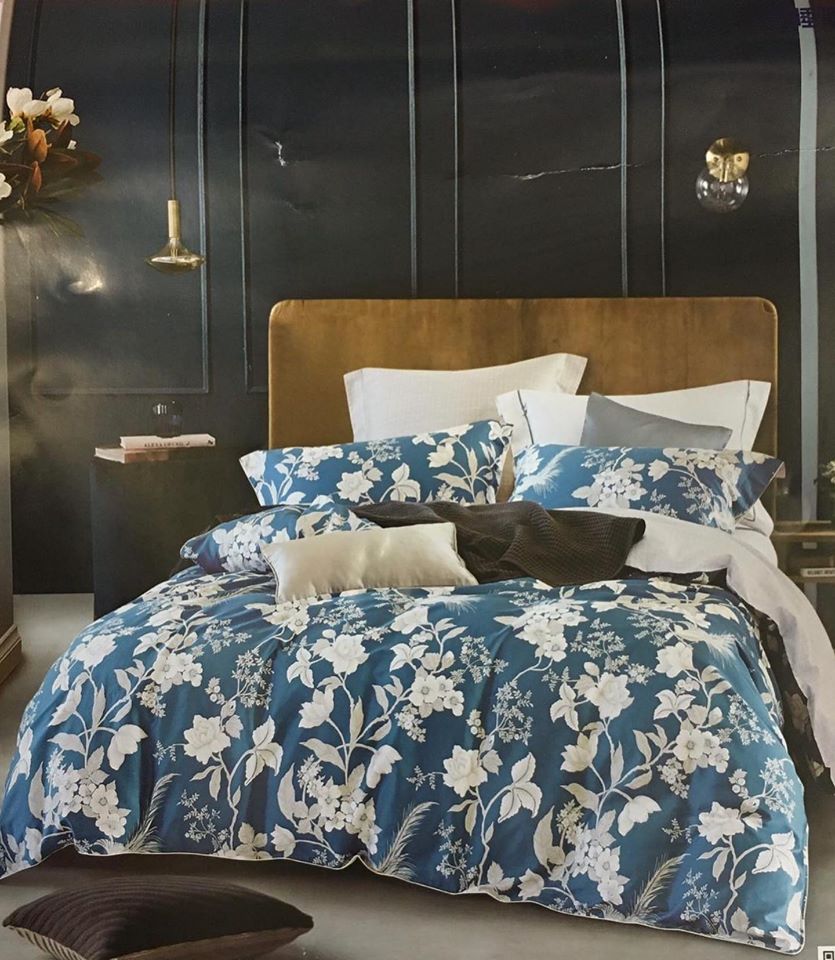 Комплект постельного белья LUX-28602 от бренда LUXE HOME представляет собой элегантное решение для спальни, выполненное в стиле современной классики. Его глубокий синий фон, украшенный нежными белыми цветами и зелеными листьями, создает атмосферу утонченности и спокойствия. Этот комплект призван преобразить вашу спальню, добавив ей изысканности и уюта.
