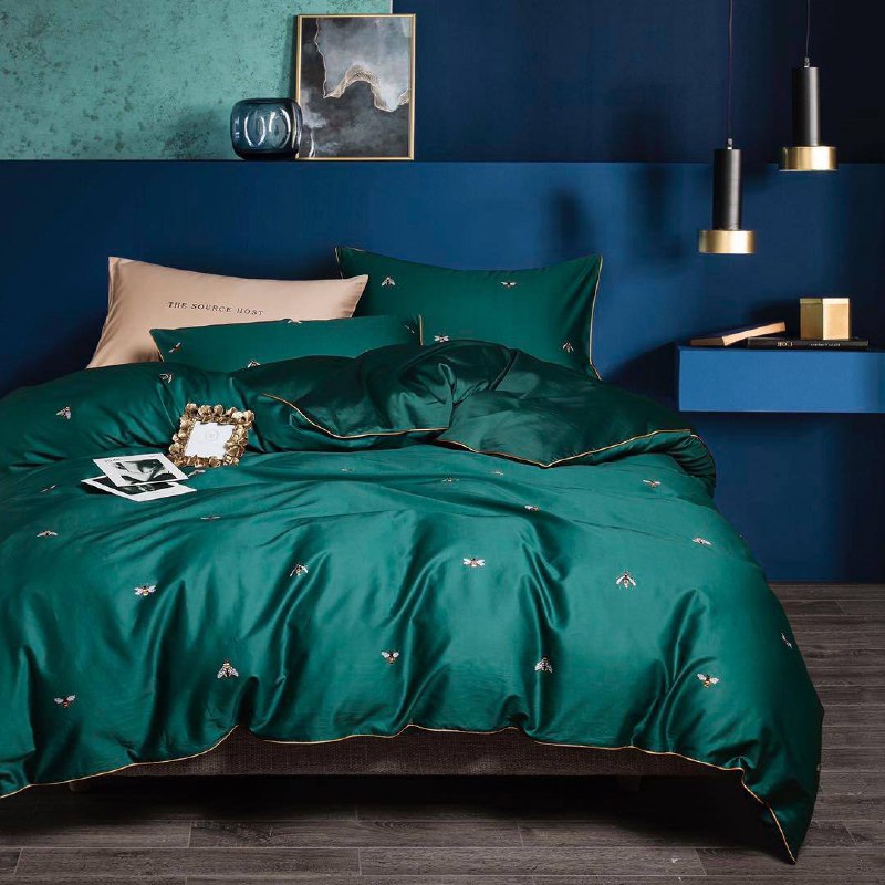 Комплект постельного белья LUX-51862 от бренда Luxe-Crime представляет собой элегантное решение для вашей спальни, выполненное в насыщенном изумрудном цвете. Дизайн украшен изящной вышивкой в виде насекомых, что придает ему особый шарм и изысканность, идеально вписываясь в современный интерьер.