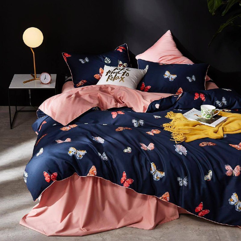 Комплект постельного белья LUX-51863 от LUXE CRIME создан для придания вашей спальне очаровательного и утонченного вида. Дизайн украшен изящным принтом с бабочками на темно-синем фоне, дополненным нежными розовыми акцентами. Этот комплект привнесет в вашу комнату нотку романтики и легкости.