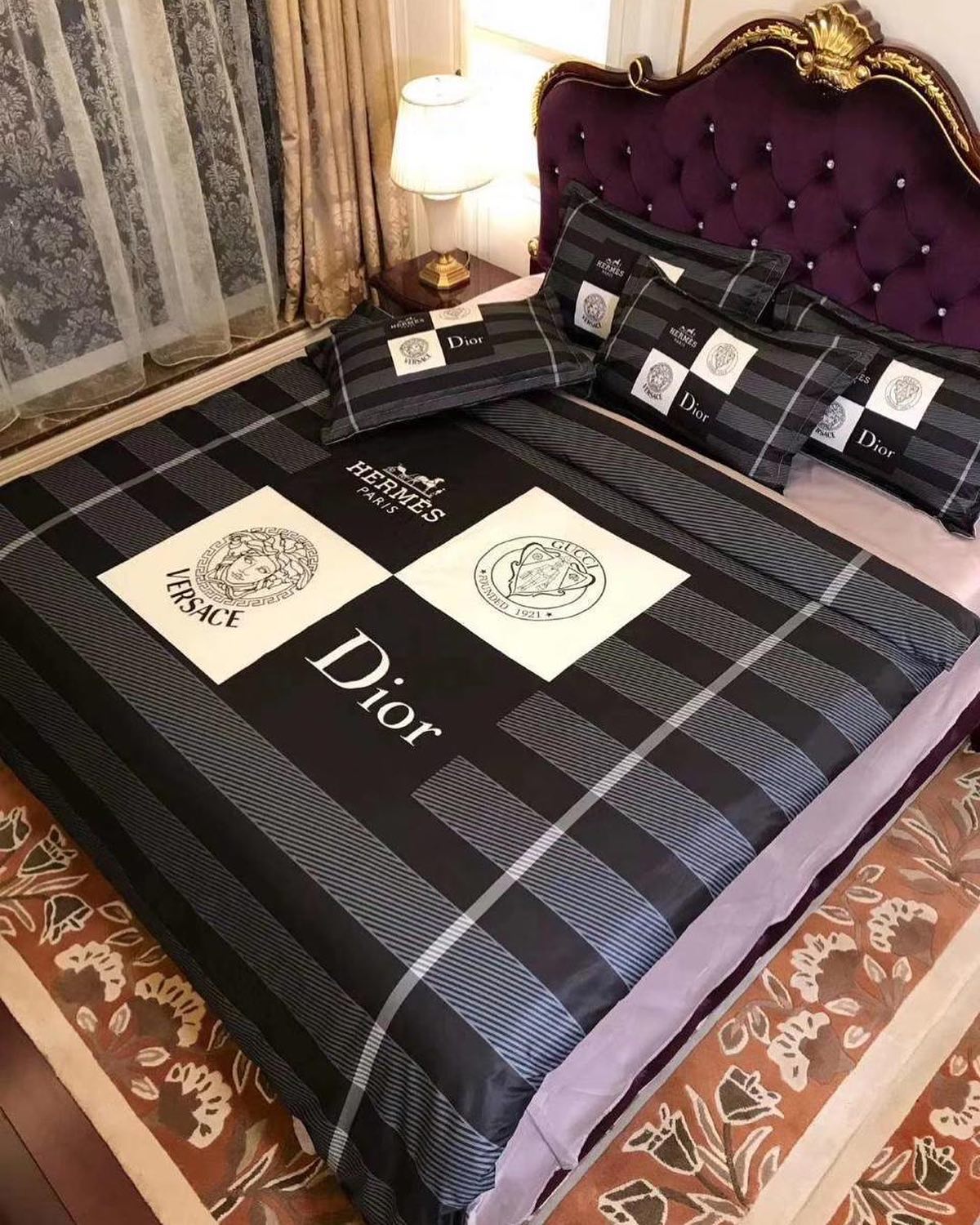 Комплект постельного белья Christian Dior LUX-31014 представляет собой элегантное и стильное решение для вашей спальни. Дизайн сочетает классическую клетку с узнаваемыми логотипами мировых брендов, создавая атмосферу роскоши и эксклюзивности. Этот комплект идеально подходит для тех, кто ценит высокое качество и изысканный стиль в каждой детали интерьера.