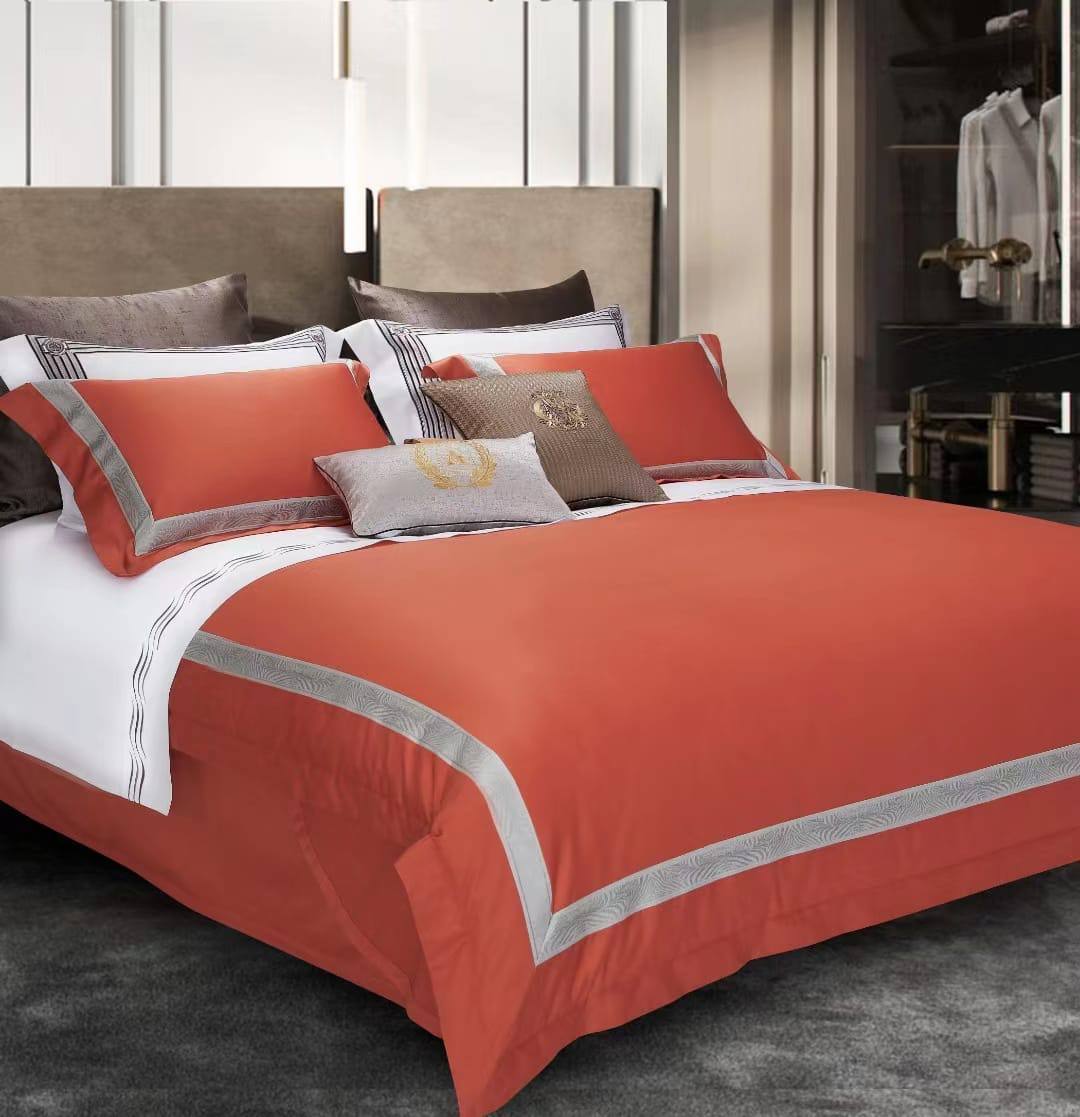 Комплект постельного белья LUX-76705 представлен в современном стиле, сочетая элегантность и комфорт. Основной цвет — насыщенный терракотовый, дополненный белыми элементами и серебристыми декоративными полосами по краю, создающими изысканный акцент. Предназначен для создания уютной атмосферы в спальне, обеспечивая приятный сон.