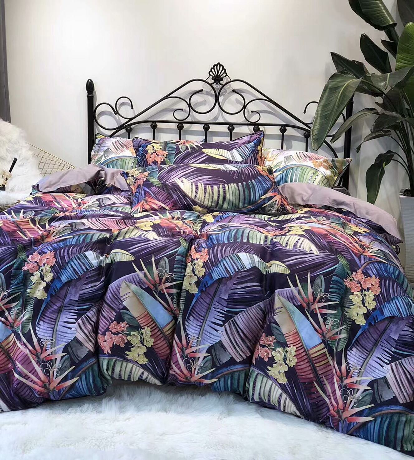 Комплект постельного белья LUX-33019 от бренда LUX-CRIME — это яркое решение для вашей спальни, выполненное в экзотическом стиле. Дизайн с крупными листьями и тропическими цветами на темном фоне создает атмосферу райского уголка, привнося в интерьер краски и позитивное настроение. Этот комплект станет эффектным акцентом и подарит ощущение отдыха.