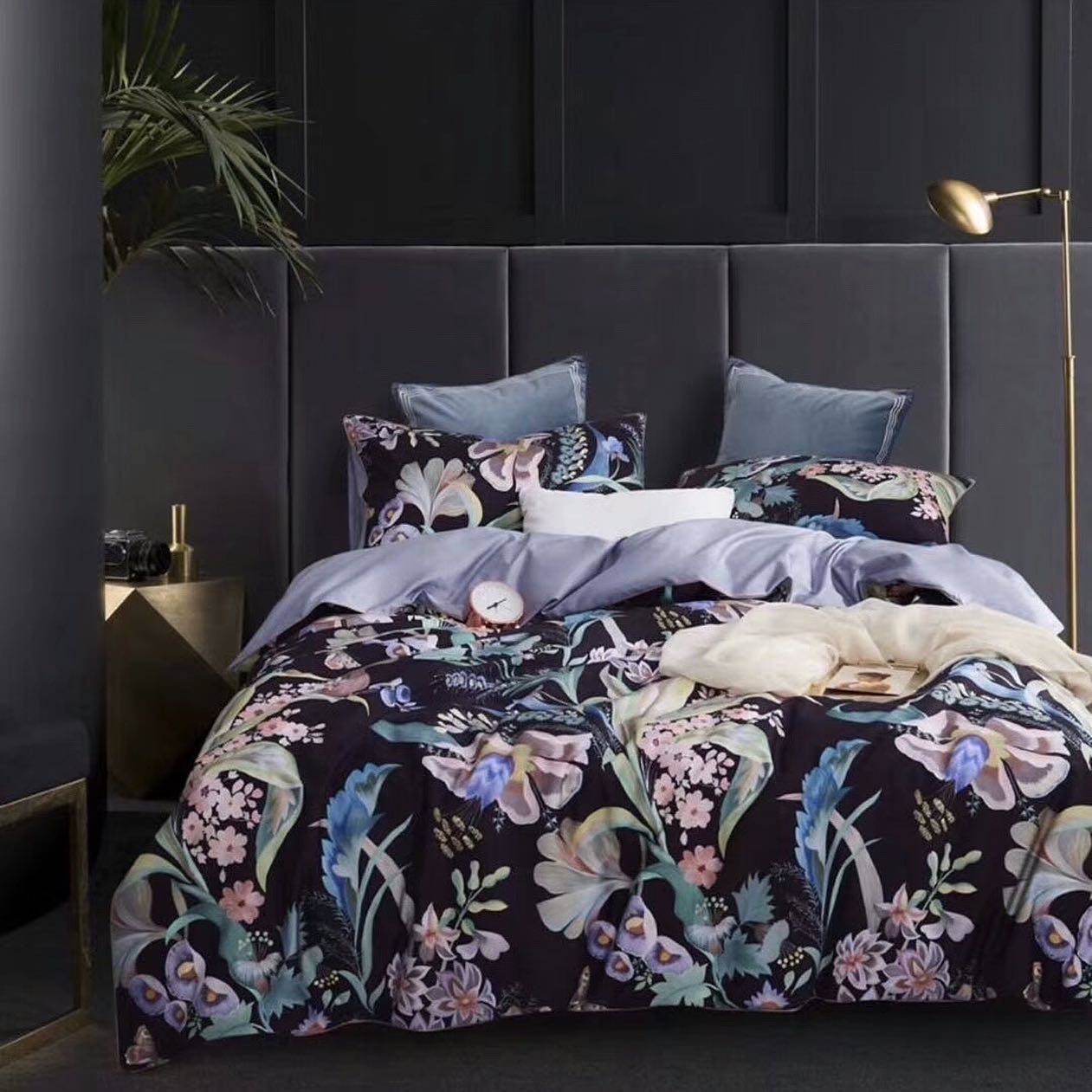 Комплект постельного белья LUX-33020 от бренда LUX-CRIME — это эффектный выбор для создания изысканной спальни. Дизайн с обильным цветочным принтом на темном фоне в стиле модерн придает изделию выразительность и глубину. Комплект станет ярким акцентом в интерьере, добавляя нотку роскоши и уюта.