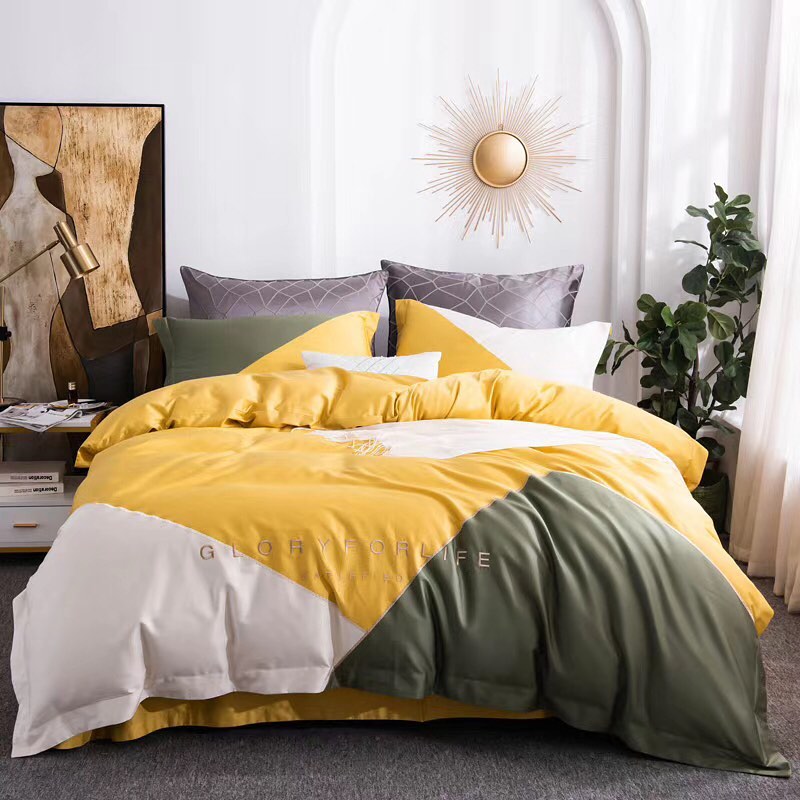 Комплект постельного белья LUX-33094 от бренда LUX-CRIME представляет собой стильное и современное решение для спальни, выполненное в геометрическом дизайне. Комбинация ярких цветов, таких как желтый, белый и хаки, создает уникальный визуальный акцент. Надпись "GLORY FOR LIFE" придает изделию особое настроение. Этот комплект призван добавить уюта и элегантности вашей спальной зоне.