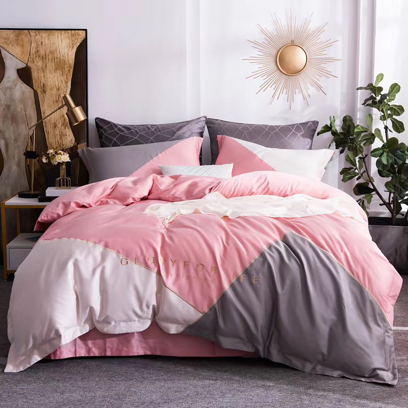 Комплект постельного белья LUX-33097 от бренда Luxe Crime — это стильное решение для спальни, выполненное в современном геометрическом дизайне. Сочетание нежных розовых, пудровых и серых оттенков создает уютную атмосферу. Принт "GLORY FOR LIFE" добавляет изысканности.