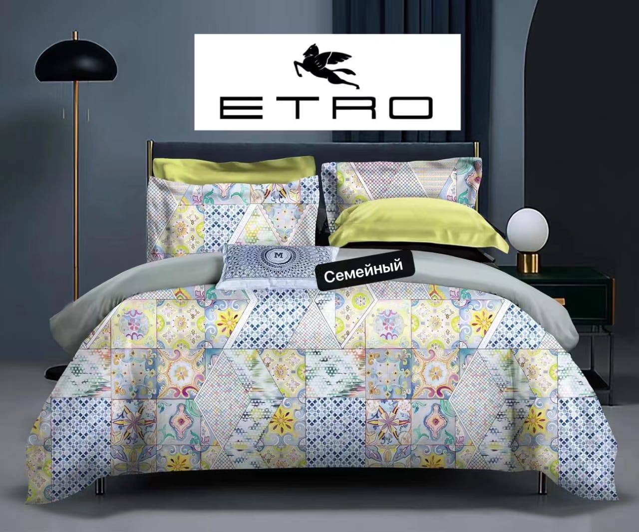Комплект постельного белья Etro LUX-76985 – это воплощение элегантности и комфорта для вашей спальни. Комплект выполнен в ярких, красочных тонах с геометрическим узором. Данный комплект прекрасно подойдет для создания уютной и стильной атмосферы в спальне.