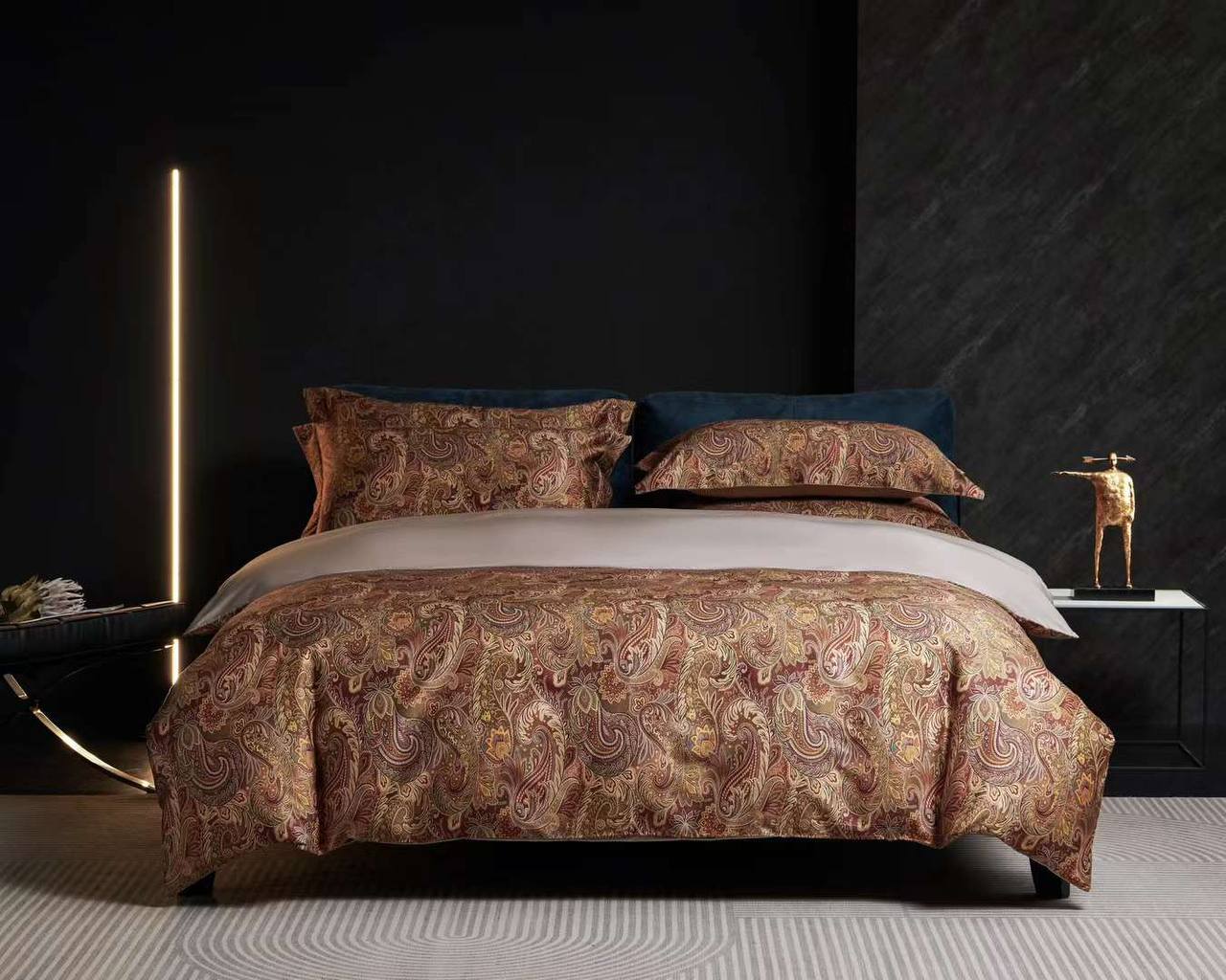 Комплект постельного белья Etro (LUX-115277) – это изысканный комплект, который привнесет роскошь и комфорт в вашу спальню. Комплект выполнен в теплых коричневых тонах с изящным узором пейсли, который создает атмосферу уюта и элегантности.