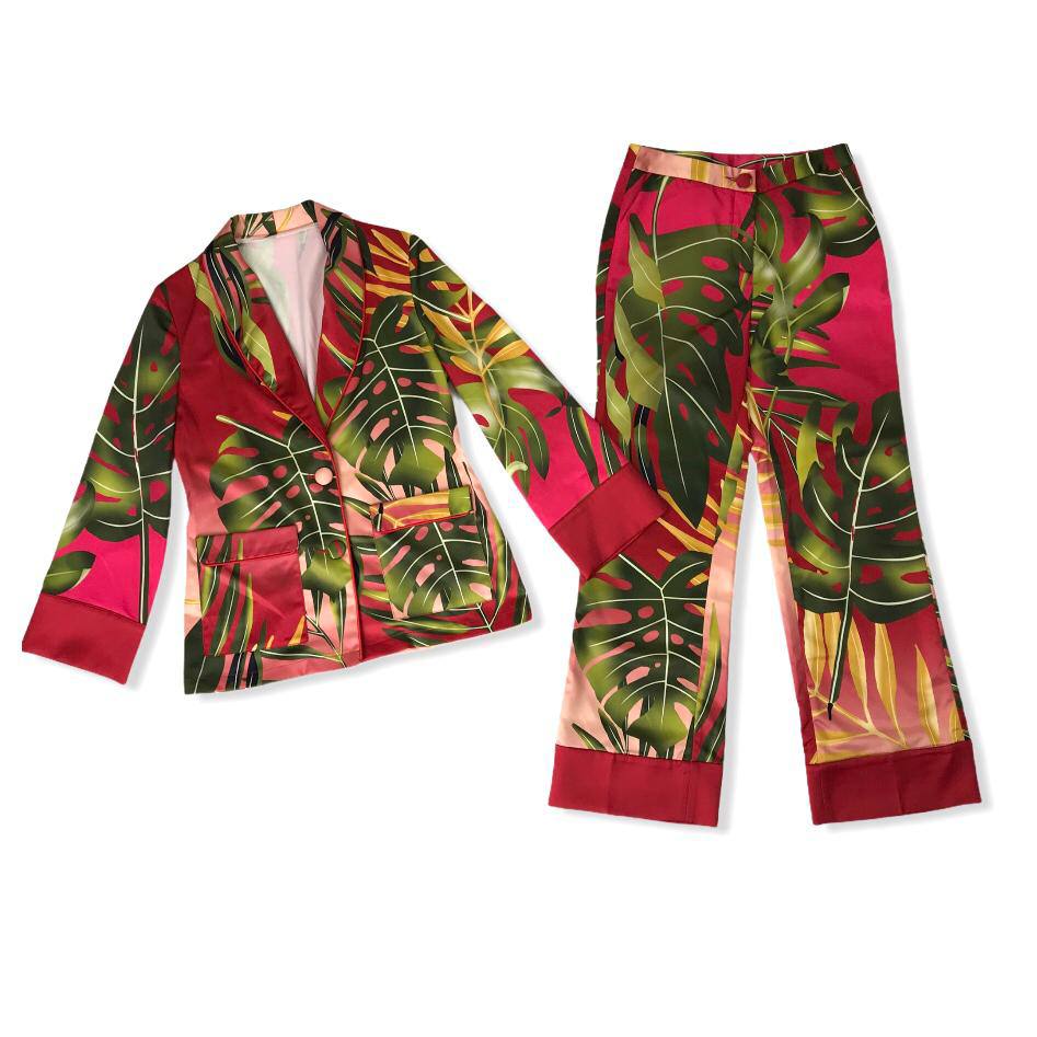 Костюм LUX-52332 от бренда LUXE-CRIME представляет собой яркий и стильный комплект, выполненный в тропическом стиле. Пиджак и брюки украшены эффектным принтом с изображением крупных листьев монстеры на фоне насыщенного малинового цвета. Этот костюм идеально подходит для создания запоминающихся образов, подчеркивая вашу индивидуальность и любовь к смелым модным решениям.
