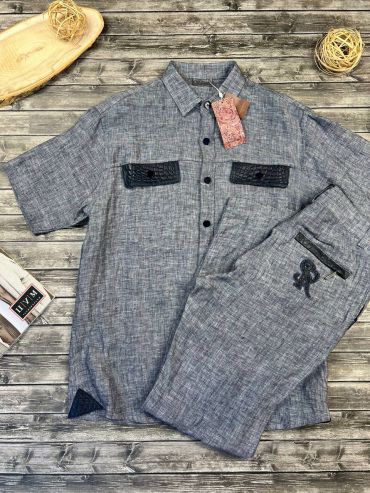 Представленный костюм Billionaire LUX-69487 - это стильный комплект, выполненный в классическом стиле. Сочетание рубашки с коротким рукавом и брюк из натуральных материалов обеспечивает комфорт и элегантность. Комплект идеально подходит для создания утонченных образов на каждый день или для особых случаев.